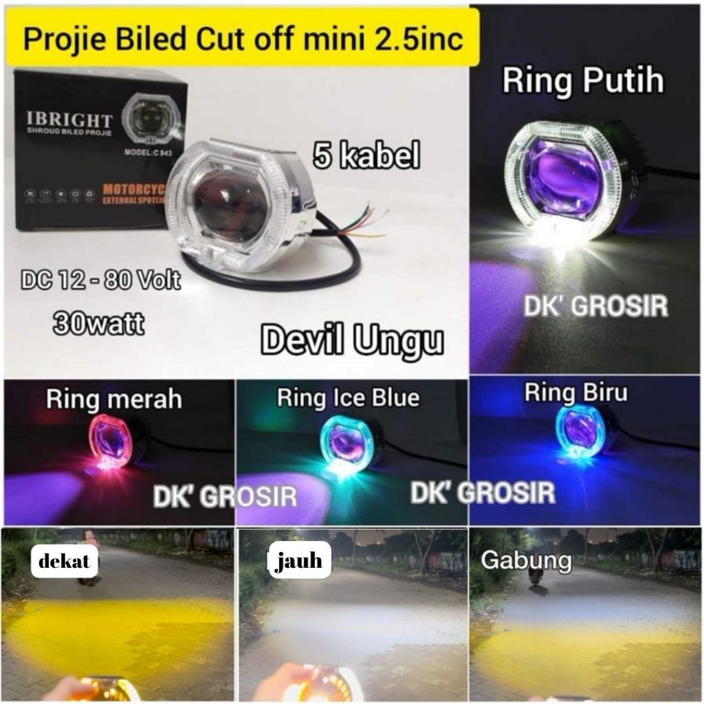 IBRIGHT - Projie Biled Cut Off mini 2.5 INC Jauh Dekat 30watt Waterproof plus devil ungu 5 kabel