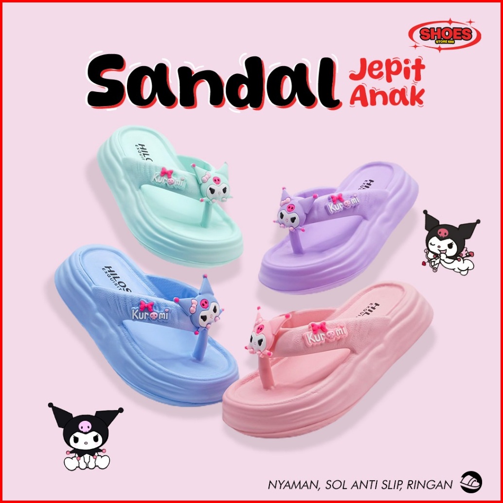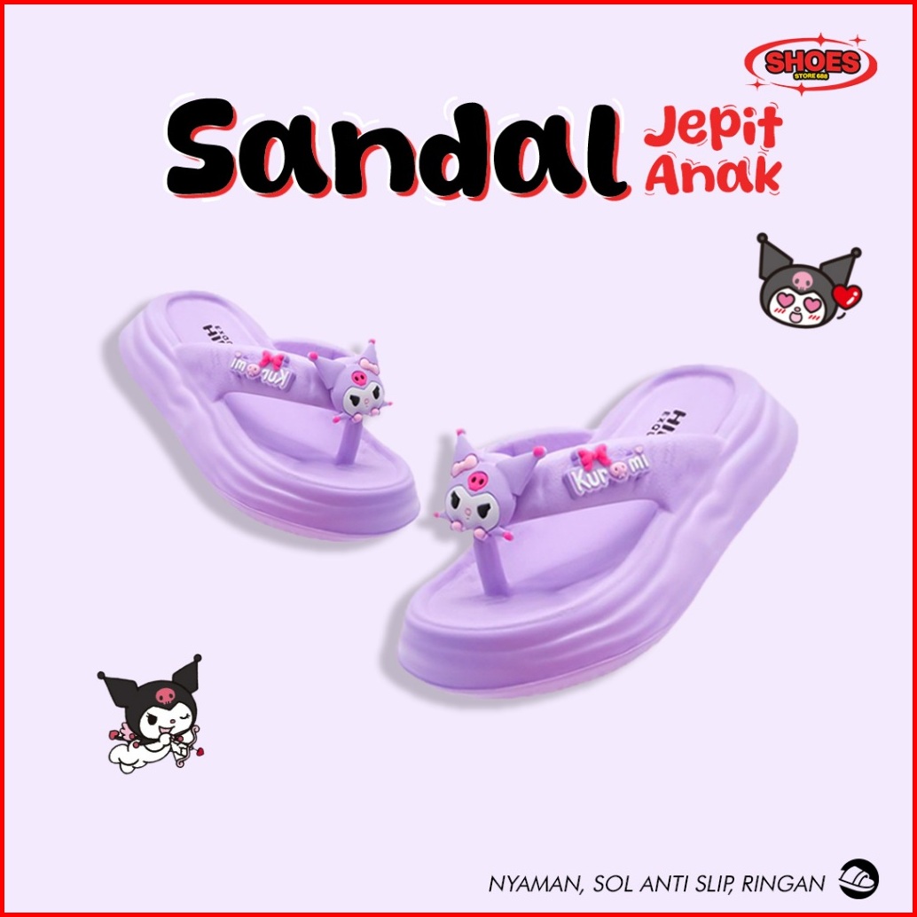 Sandal Jepit Anak Perempuan Motif Kuromi Anti Slip Nyaman Dipakai