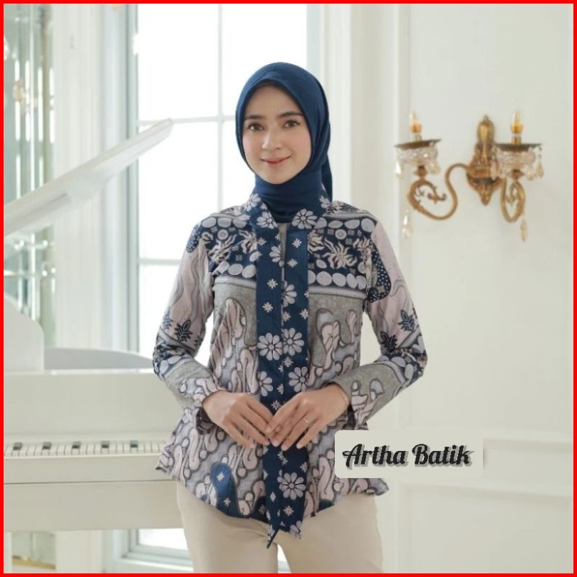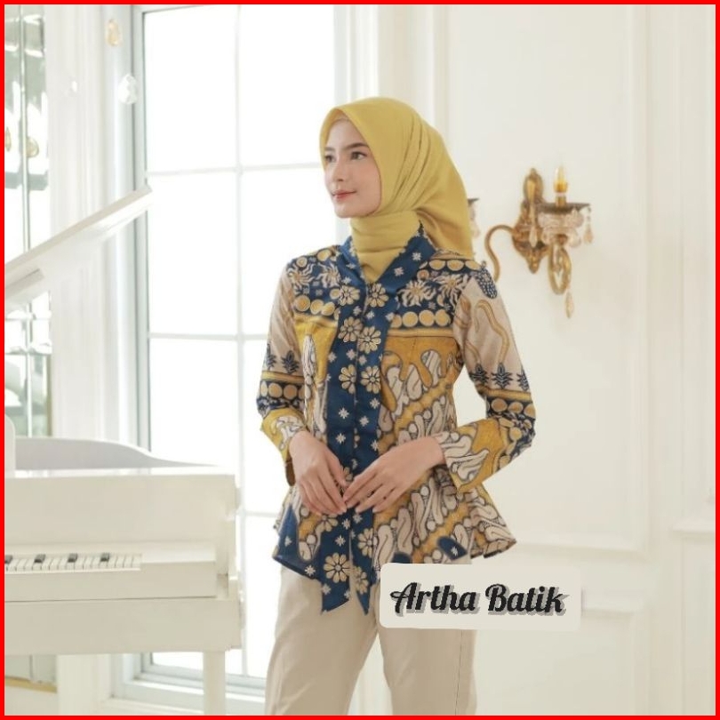 Batik Wanita Modern Lengan Panjang Kancing Depan Blus Batik