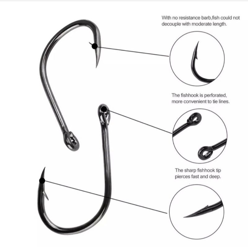 Set Kail Pancing 10 Ukuran 500 Buah, Peralatan Memancing Baja Karbon Lingkaran Tunggal, Perlengkapan Memancing untuk Menangkap Ikan.