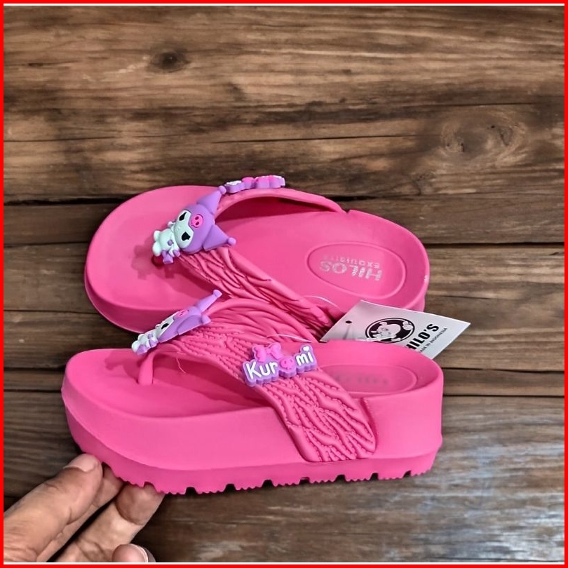 Sandal Jepit Wedges Anak Perempuan Sandal Kuromi Hak Tinggi Sendal Fashion Anak Wanita 2-9 Tahun