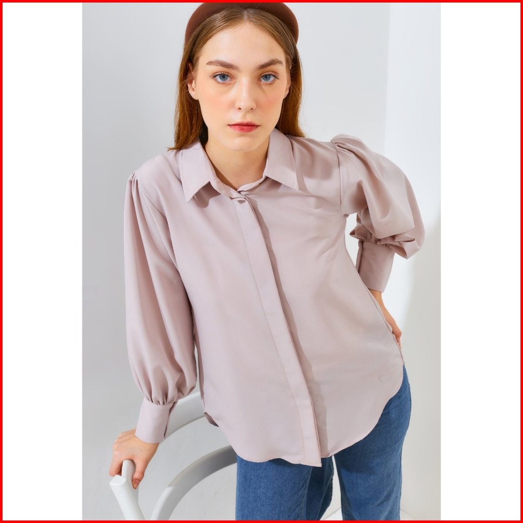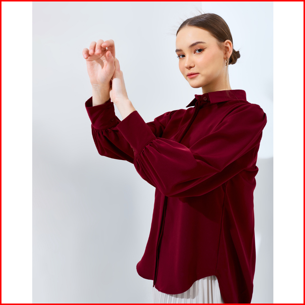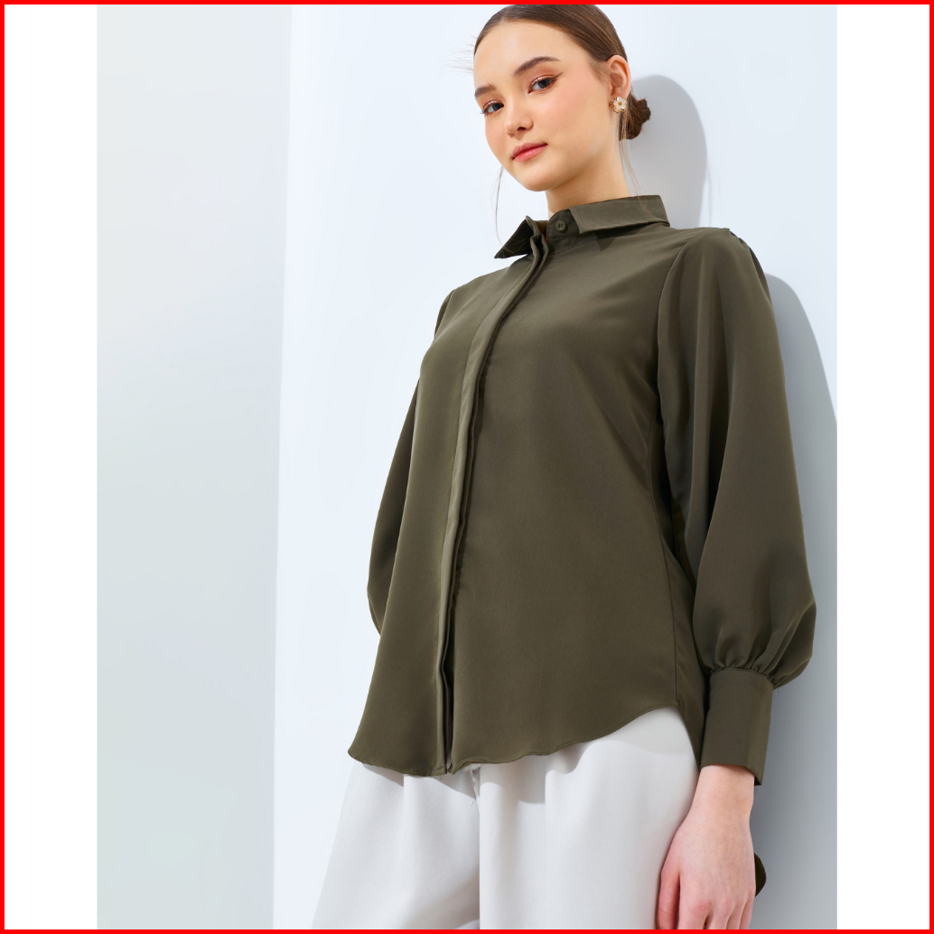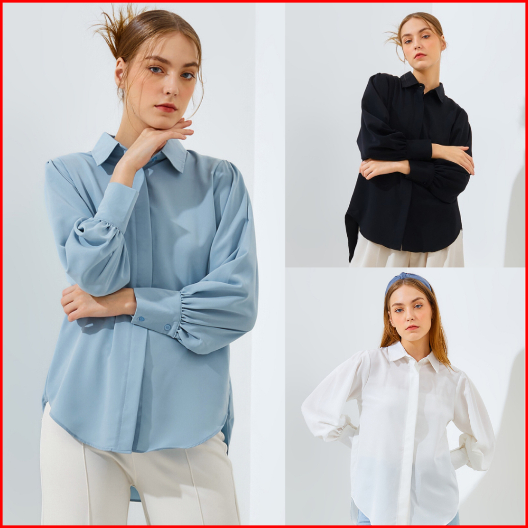 Zivaa.co Triangle Shirt Kemeja Wanita Woven Cotton Premium Polos Blouse Kantor Casual