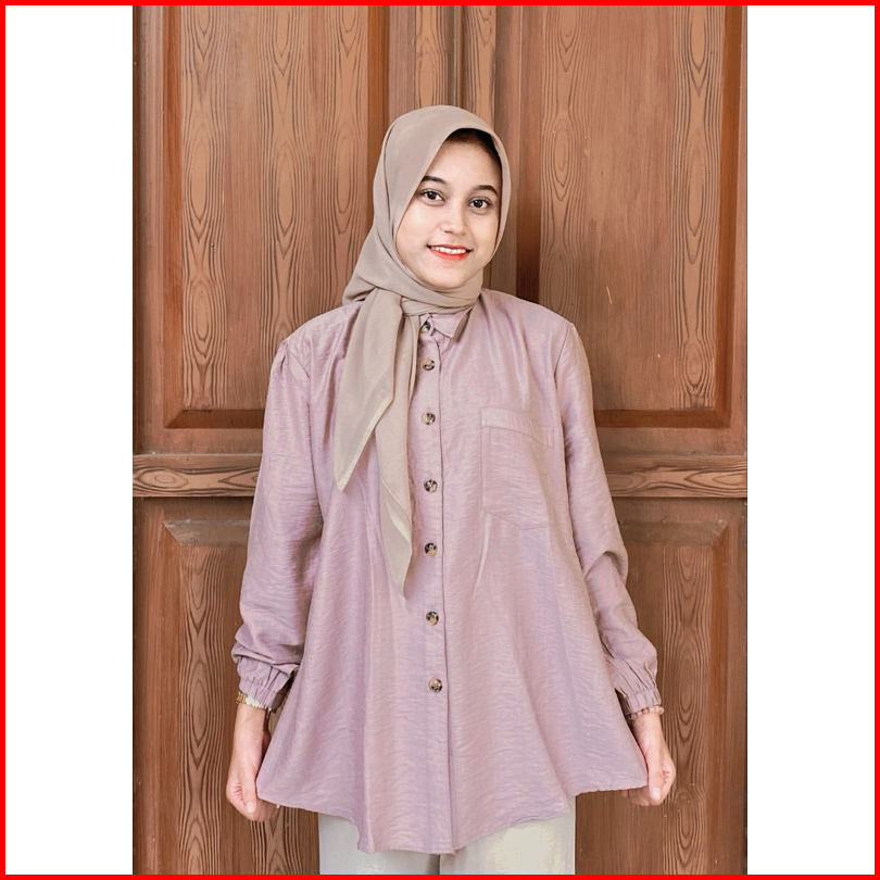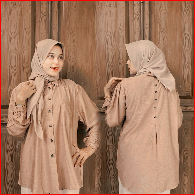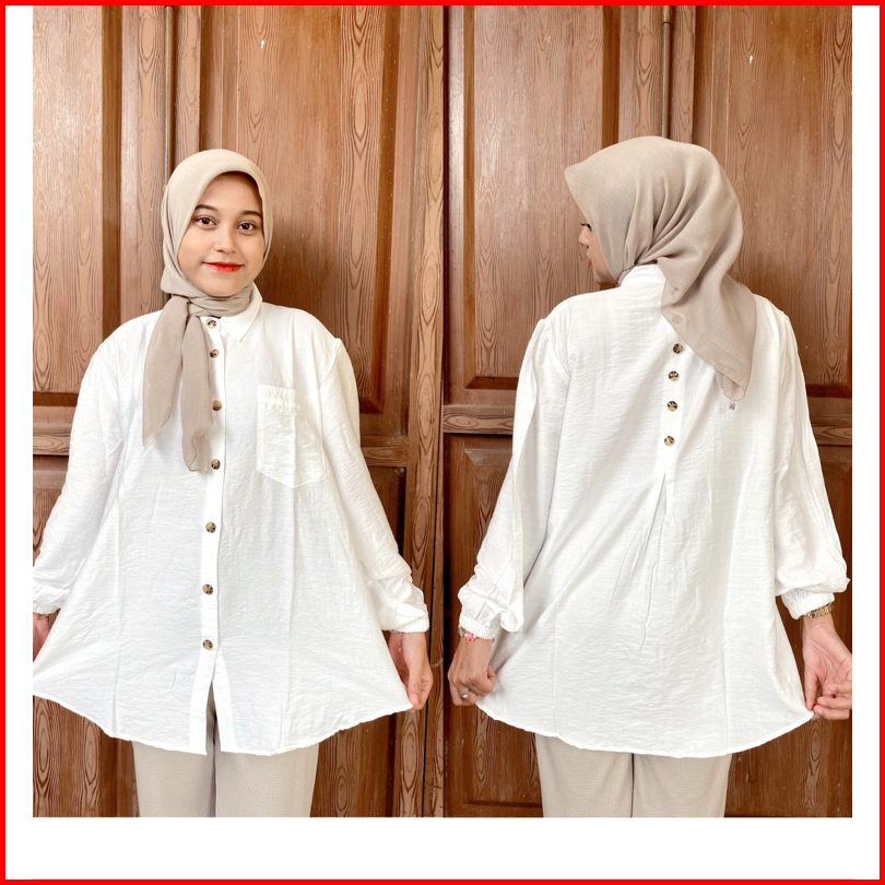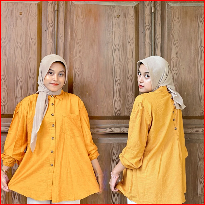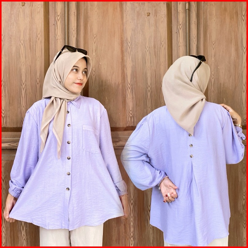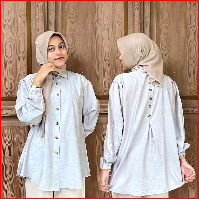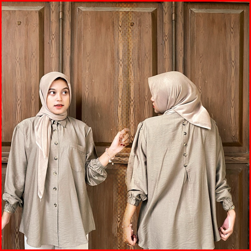 Nitnit Blouse Ld 120cm Baju Atasan Wanita Oversize Variasi Kancing Belakang Tangan Karet Polo Linen Polos Basic Fit Kain