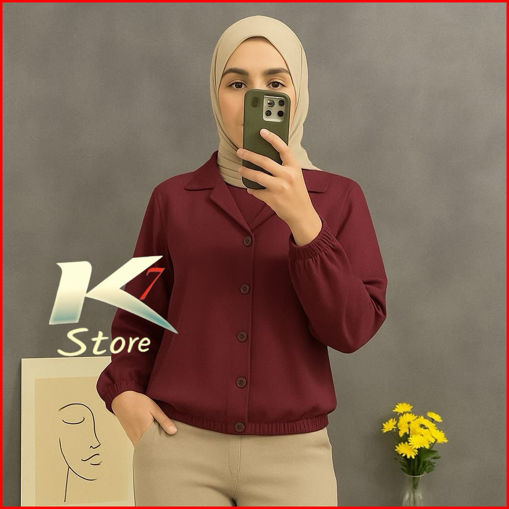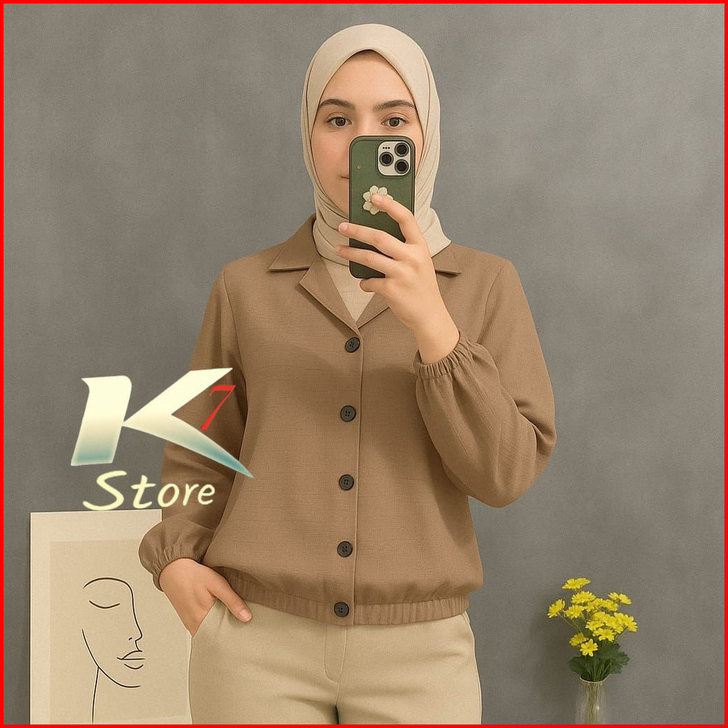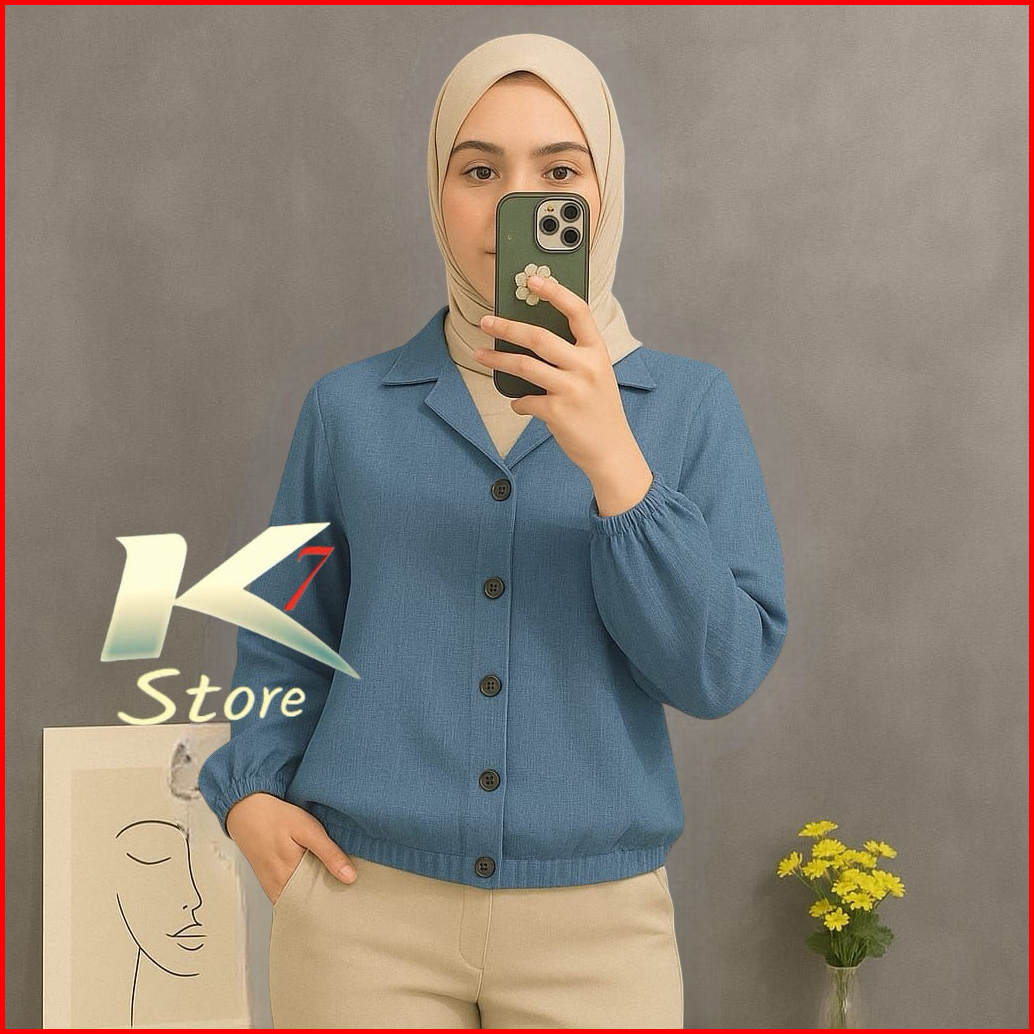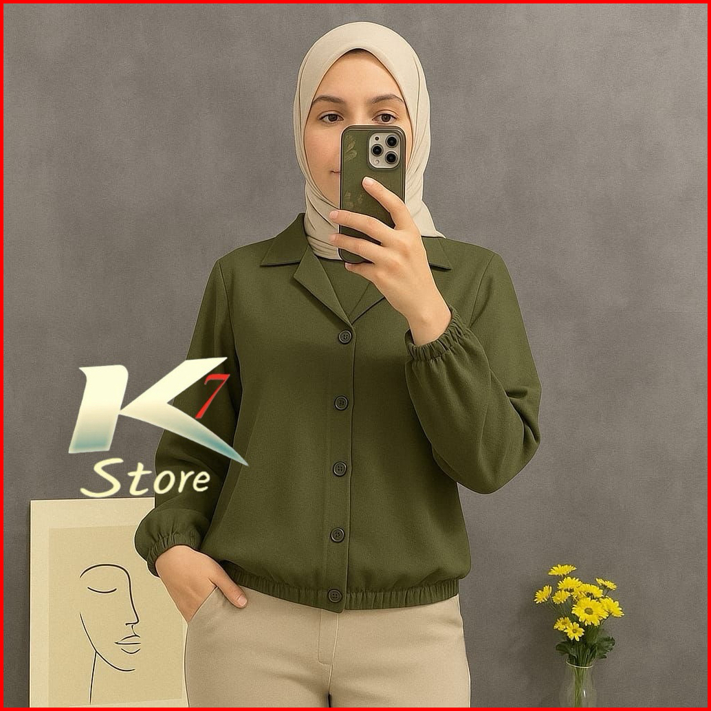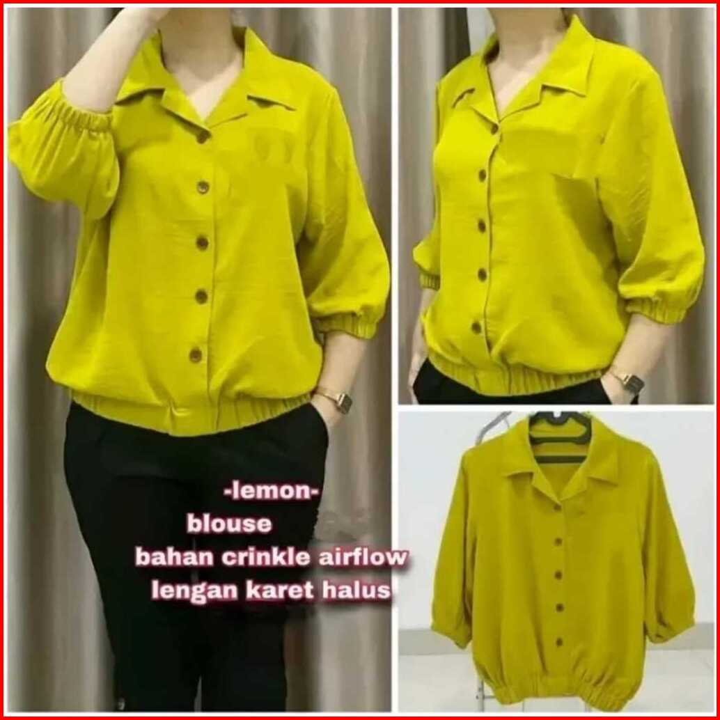 Blouse Cringkle Kancing Atas Tangan Karet Model Terbaru Atas Wanita Polos Blouse Terbaru Star