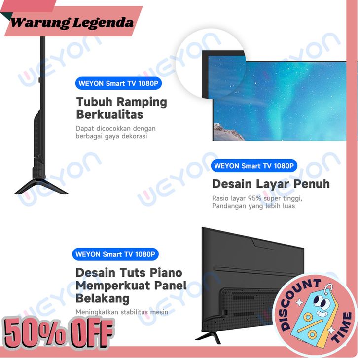 tv smart 32 inch Weyon Smart TV LED 27 Inch/30 Inch Smart TV Digital FHD TV LED Android 110 Youtube WIFI Web broswer