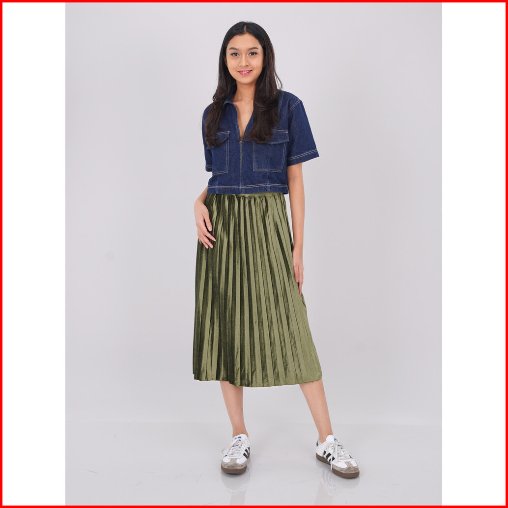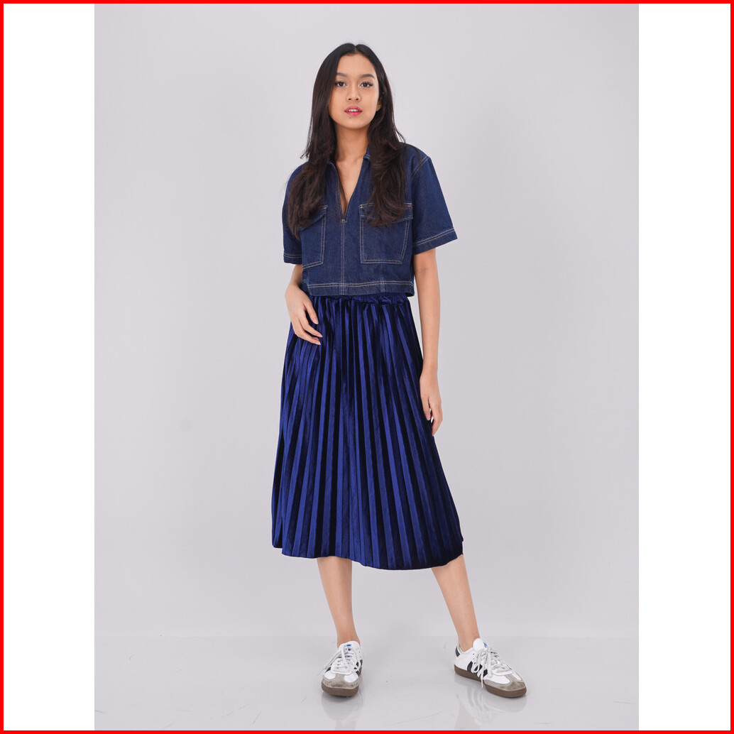 Debora Rok Plisket Bludru 7 8 Velvet Midi Skirt Outlet