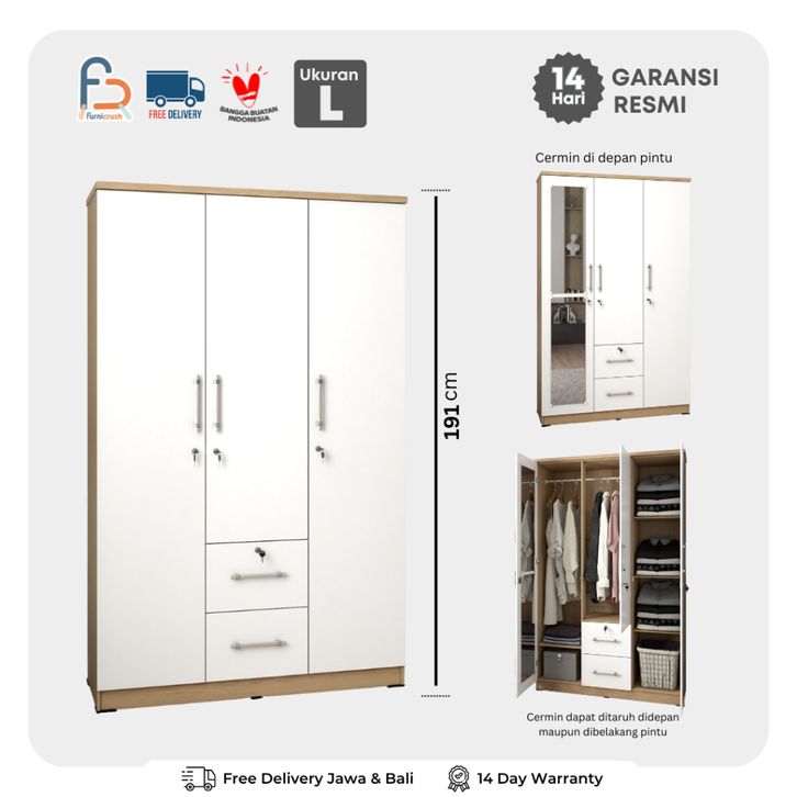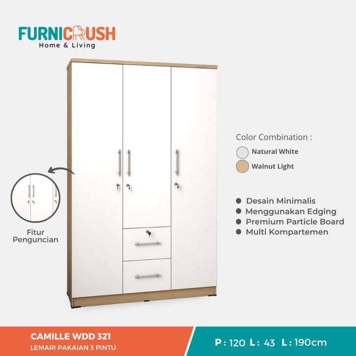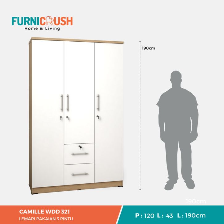 Lemari Pakaian 3 Pintu / Lemari Gamis / Almari Pakaian / Wardrobe Baju Estetik - CAMILLE WDD 321 Model Terbaru 2024