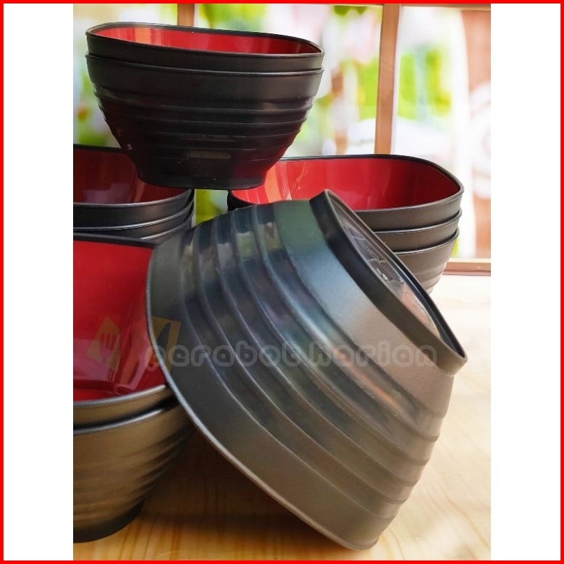 12pcs Mangkuk Petak Hitam Polos Ulir Ramen 16 5cm Terbaru Kekinian Termurah Terlaris Berkuwalitas