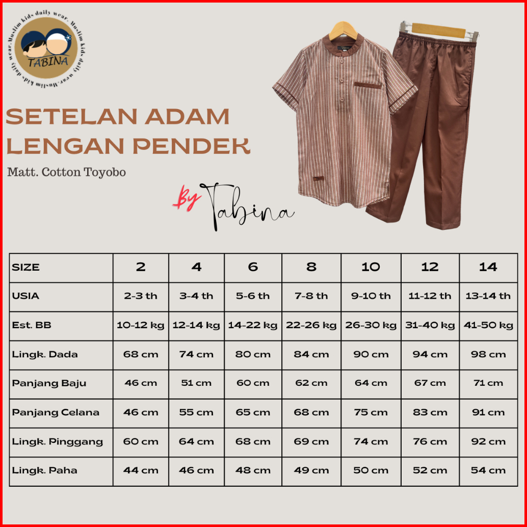 Tabina Setelan Kurta Lengan Pendek Anak Laki Laki Sampai Remaja Seri Adam Usia 2 Hingga 14 Tahun
