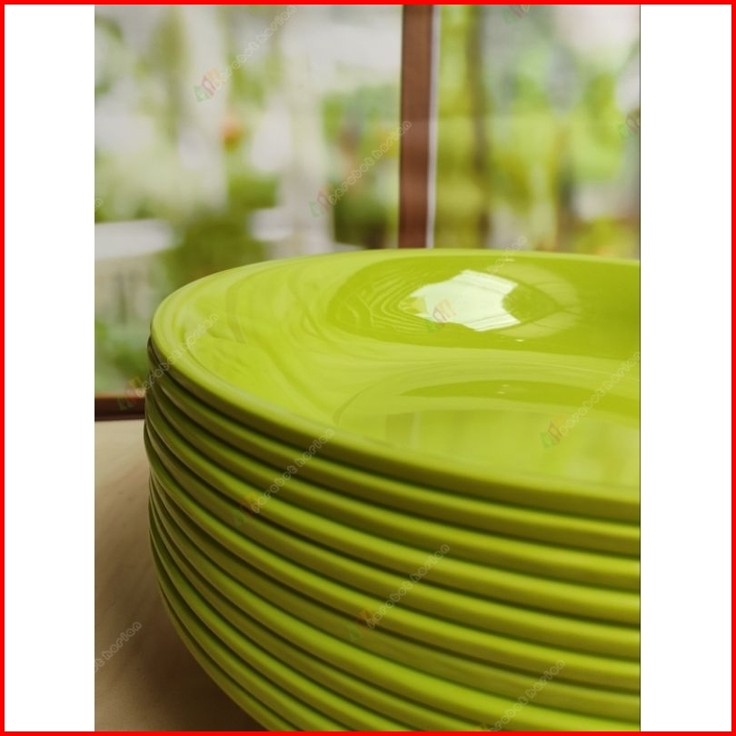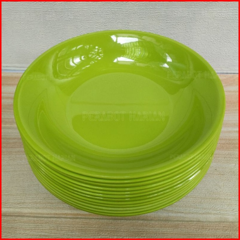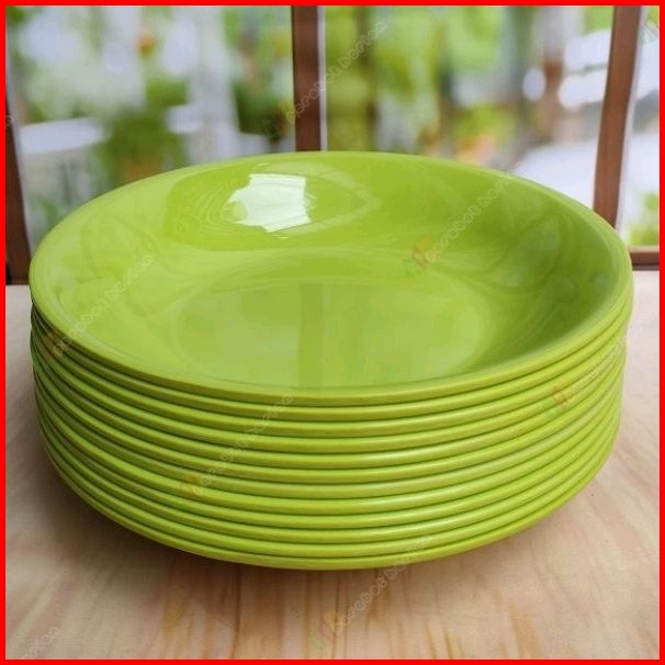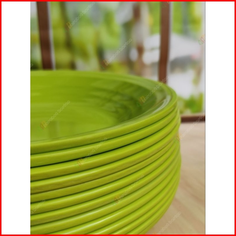 12pcs Piring Makan Bulat Cekung Hijau Polos 23cm 9inc Melamine Original Meishing Food Grade Sni Tebal Kuat Tahan Panas B