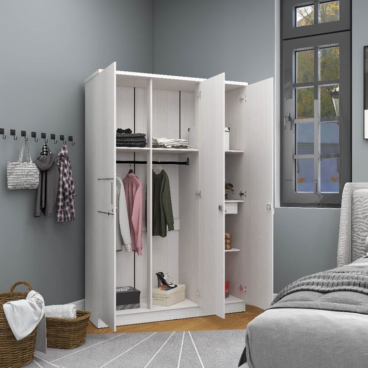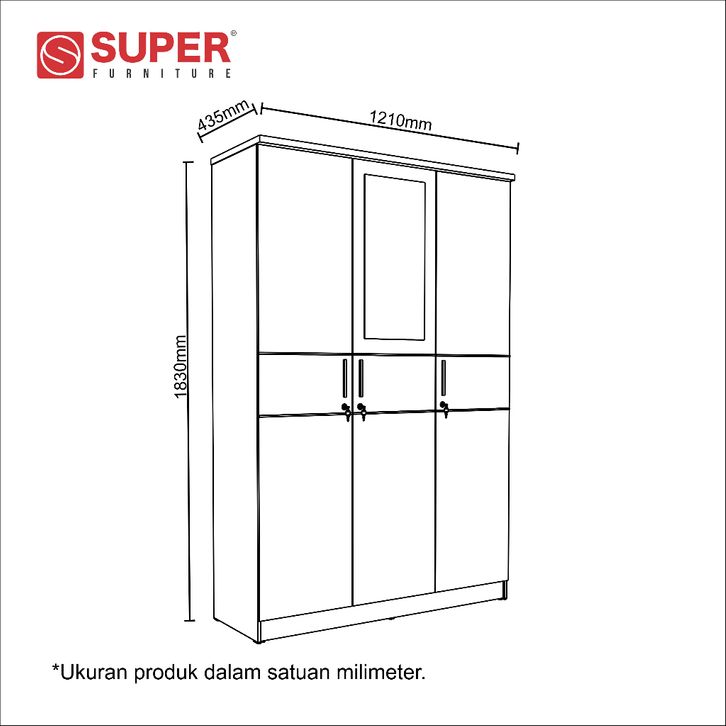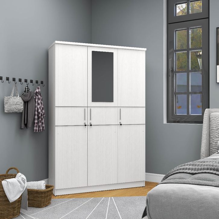 Lemari Pakaian Tiga Pintu Minimalis Warna Putih | LPC 418