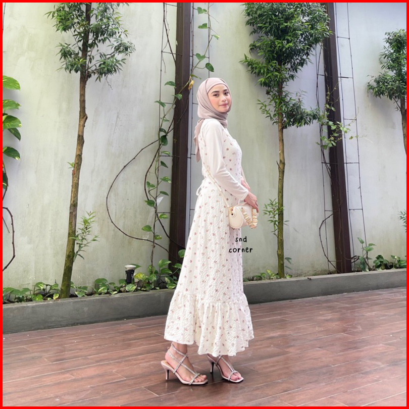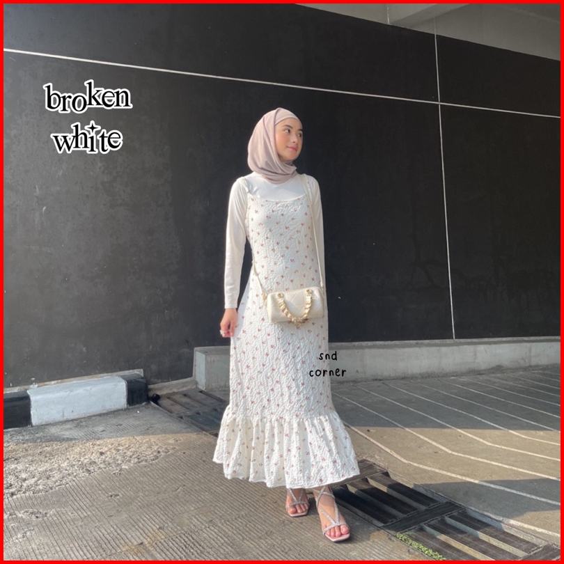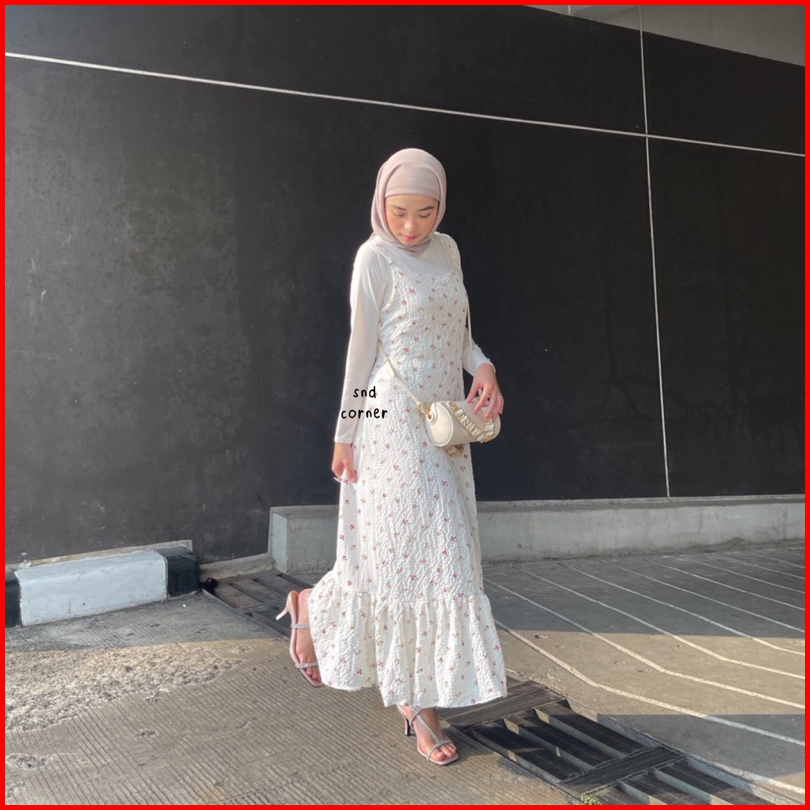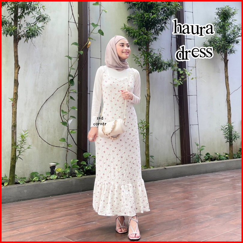 Haura Floral Dress Korean Dres Overall Tanpa Lengan Motif Bunga