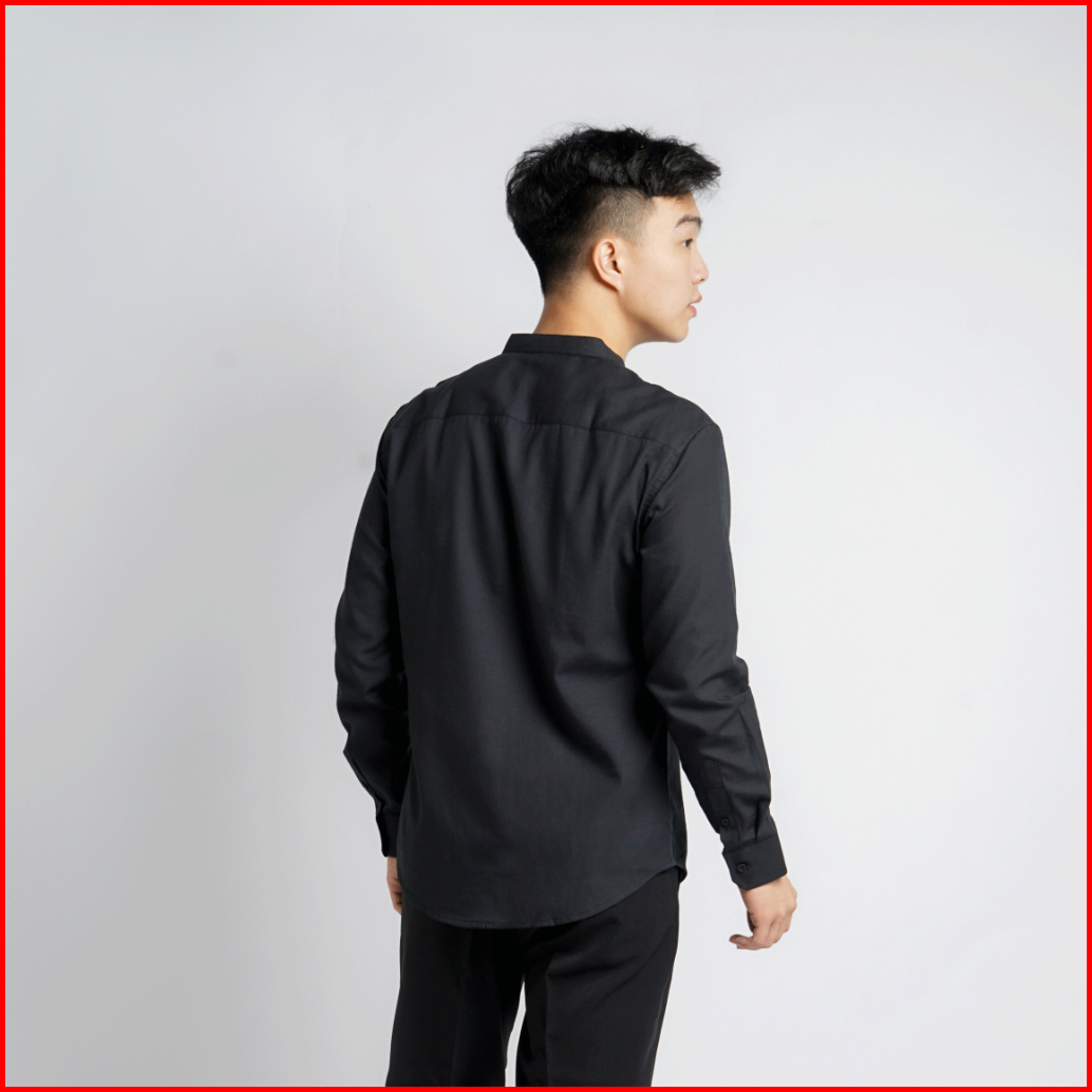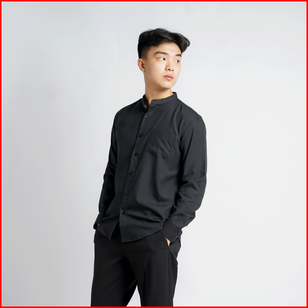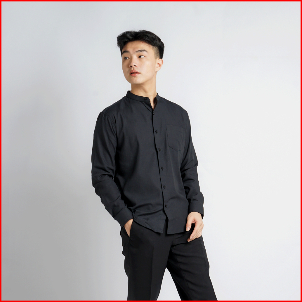 Kemeja Pria Lengan Panjang Kerah Mandarin Black