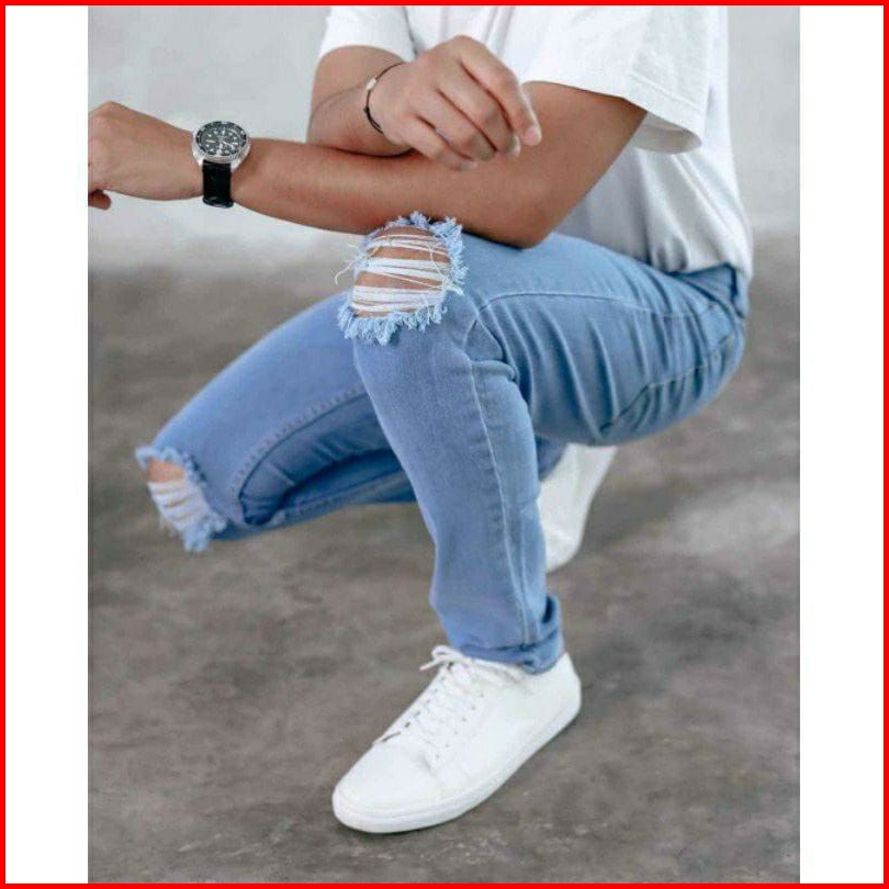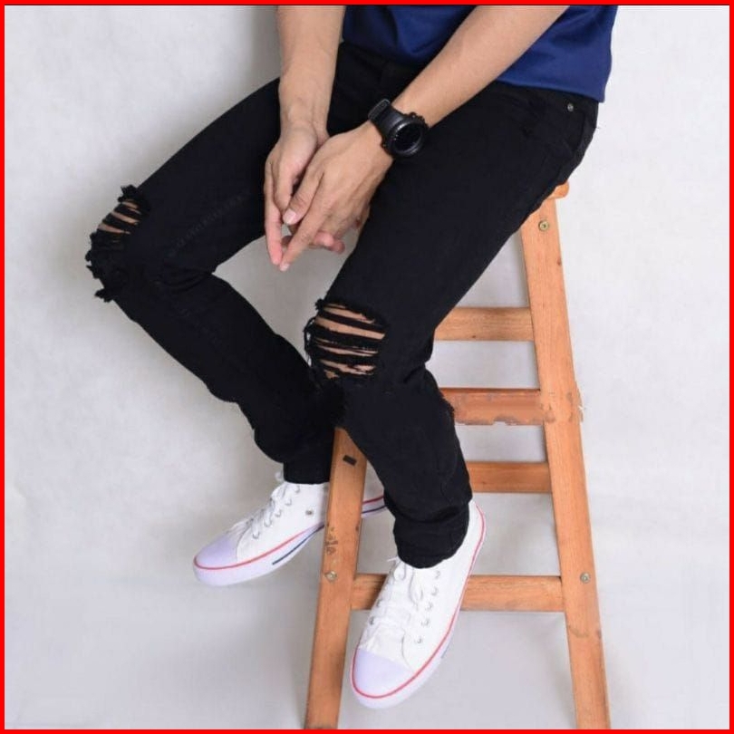 Celana Jeans Sobek Lutut Robek Ripped Celana Jins Pria Hitam Destroy Premium
