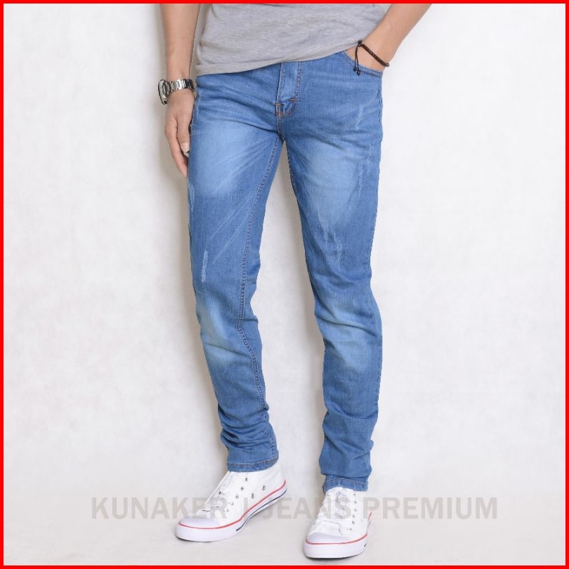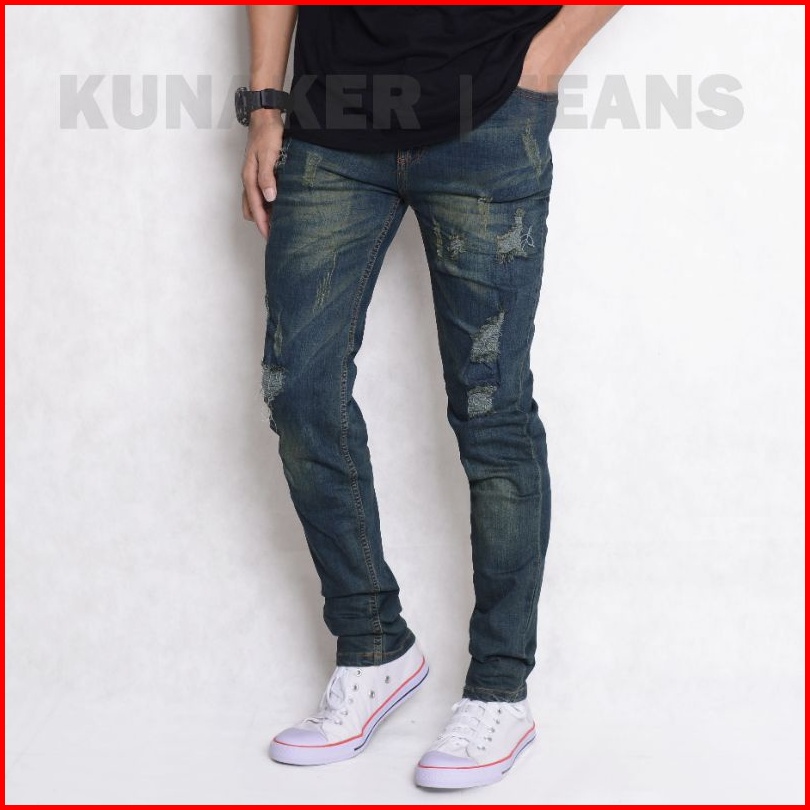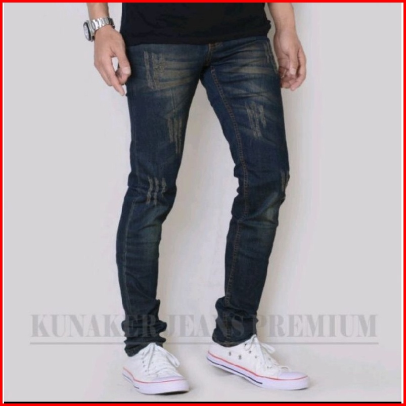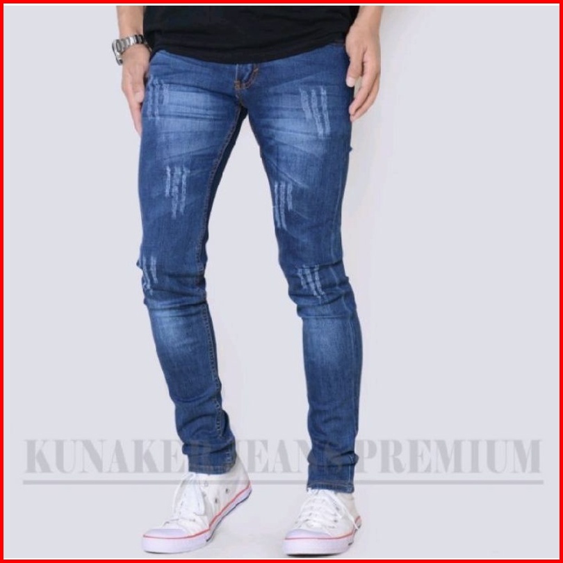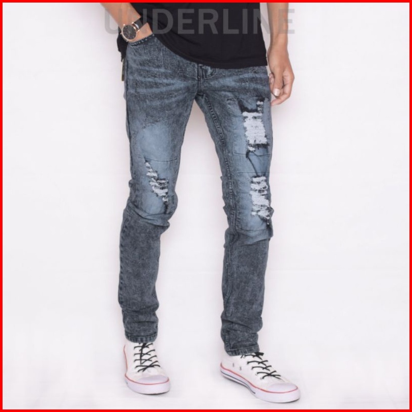 Celana Jeans Pria Premium Sobek Laser Tidak Tembus Jeans Denim Pria Terlaris Original Kunaker