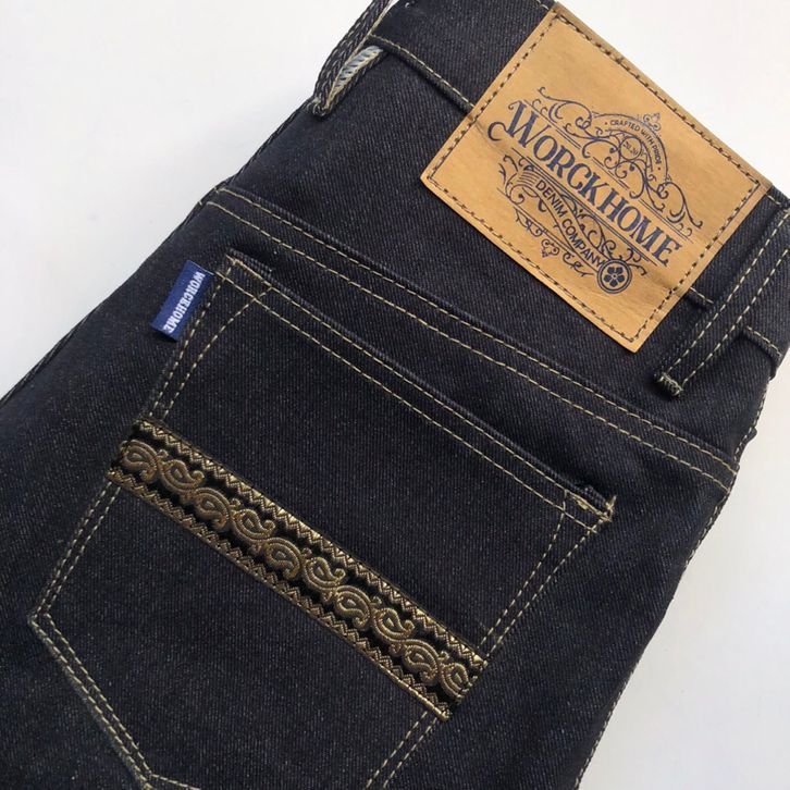 Terbaru Celana Denim Pria Worckhome Black Etnic Raw Denim Deep Indigo 14,5 Oz Accents Redline Celana Jeans Panjang Pria
