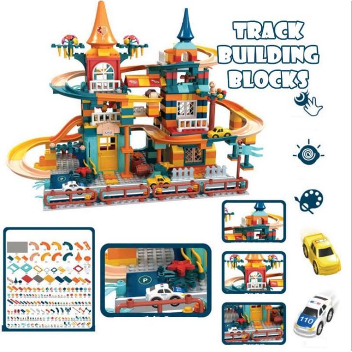 capt Mainan Anak Susun Balok Rel Seluncur Bola - Building Block 512pcs