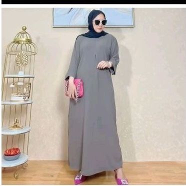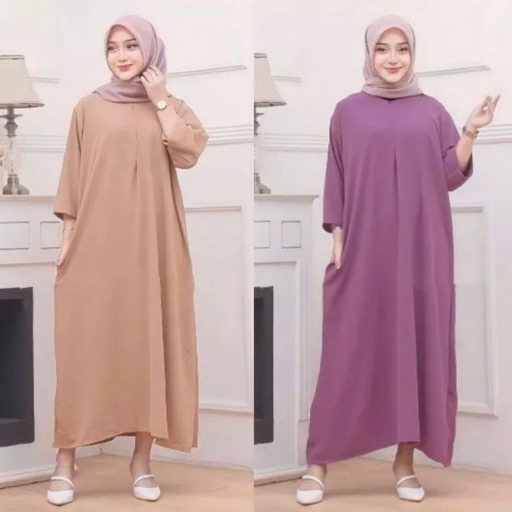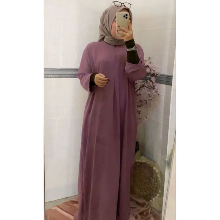 Dress Gamis Cringkle Airflow Busui Long Dress Wanita Lengan 3 4 Dress Wanita Muslim Bahan Crinkle Adem Tidak Mudah Lecek