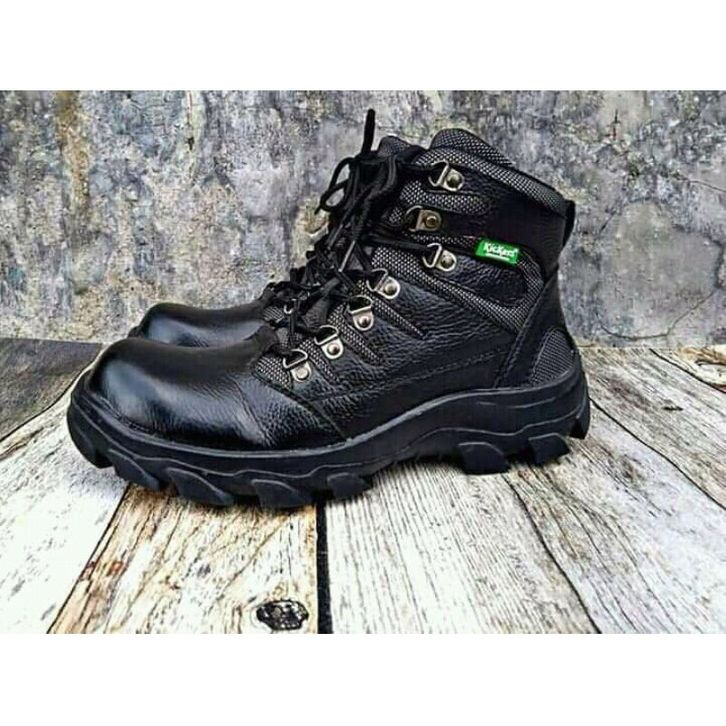 sepatu pria safety boots ujungbesi kickers kulit sapi asli kerja proyek lapangan tni