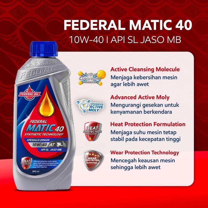 FEDERAL OIL Matic 40 10W-40 0.8L 800ml - Oli Motor Matic AT 2 Botol