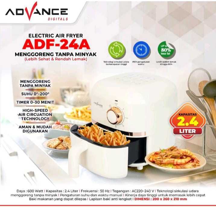 Advance Electric Air Fryer ADF-24A Mesin Penggoreng Tanpa Minyak Garansi Resmi Advance 1 Tahun