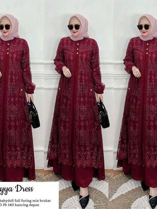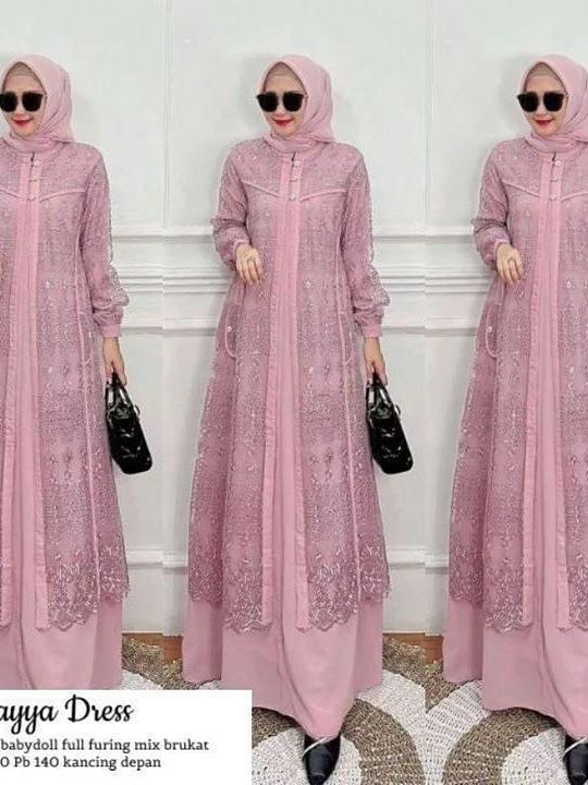Gamis Wanita Dress Bahan Ceruty Cantik Mix Brukat Size M XXL Pakaian Wanita Baju Muslim Wanita Dress Muslim Wanita Adem