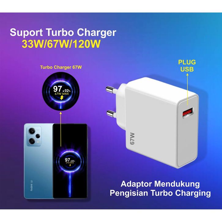 Charger REDMI 67W Batok M12 USB Micro & Type C Flash Turbo Charging Adapter High Quality