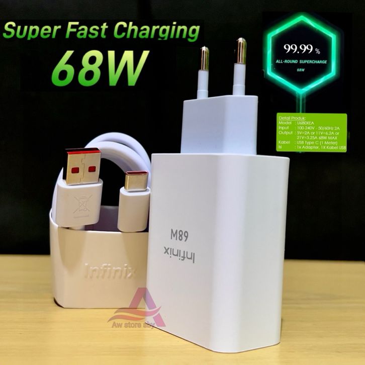 Charger infinix Type C Fast Charging Hot 11 11S 20 30 40 Note 8 10 11 12 20 30 Zero 20 30 X Neo Pro VIP Nfc 45W 68W Ori