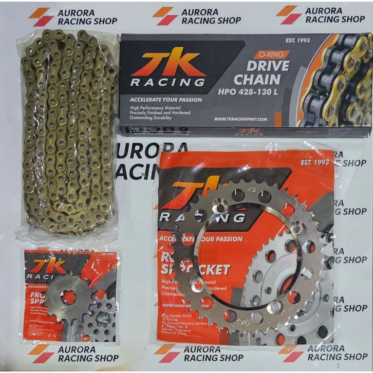 GEAR SET TK SUPER MOTO KLX 150 / D TRACKER 150 & RANTAI TK O RING 428 HPO GOLD ORIGINAL