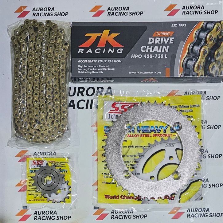 GEAR SET SSS SUPER MOTO KLX 150 / D TRACKER 150 & RANTAI TK O RING 428 HPO GOLD ORIGINAL