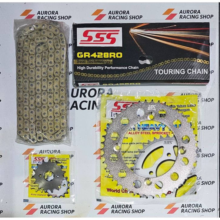 GEAR SET SSS 428 KAWASAKI KLX 150 / D TRACKER 150 & RANTAI SSS O RING 428 RO GOLD ORIGINAL