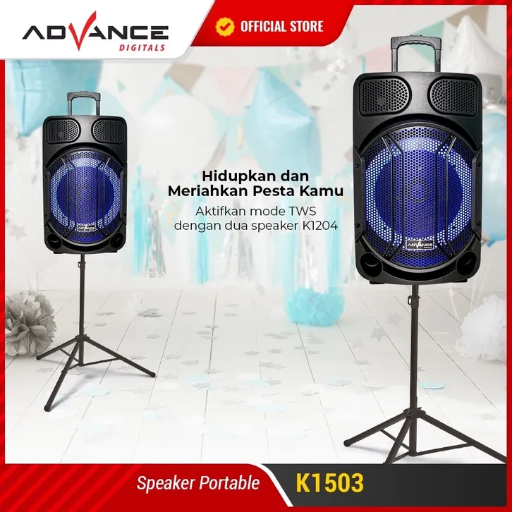 ADVANCE SPEAKER BLUETOOTH PORTABLE TWS 15INCH+2XMIC WIRELESS K1203/1503