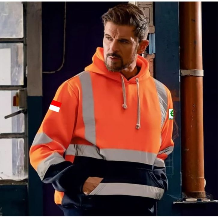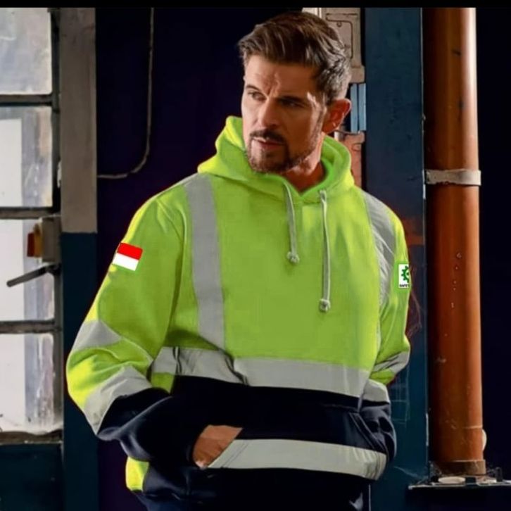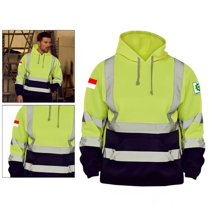 JAKET JAMPER SWEATER HOODIE SAFETY HI-VIS REFLECTIVE 3M SCOTHLITE U TEKNISI TAMBANG PROYEK LAPANGAN SECURITY