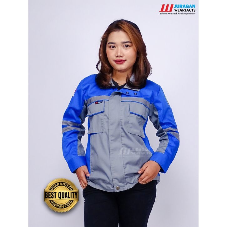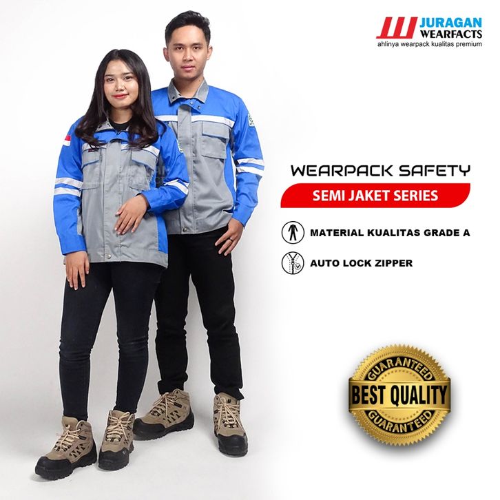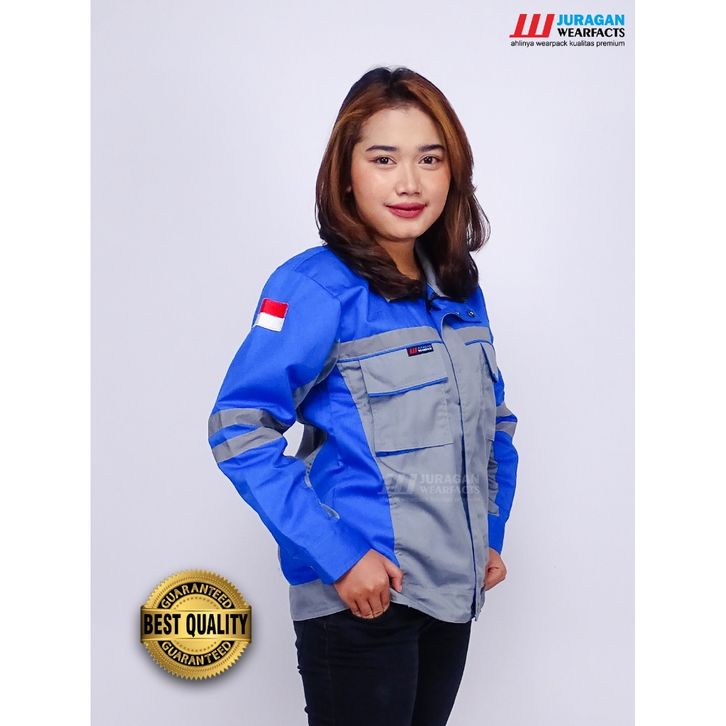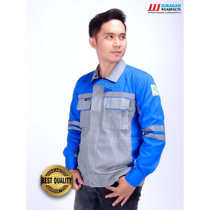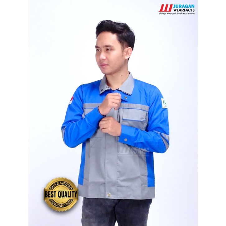JURAGAN WEARFACTS - WEARPACK ATASAN MODEL SEMI JAKET WARNA ABU - ABU KOMBINASI BIRU BENHUR