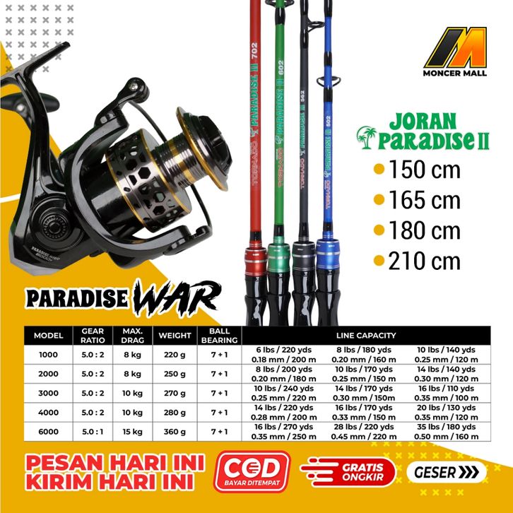 Set Alat Pancing Set Pancing Joran Paradise II & Reel Paradise War | Spinning & Casting Mancing Laut Kolaman