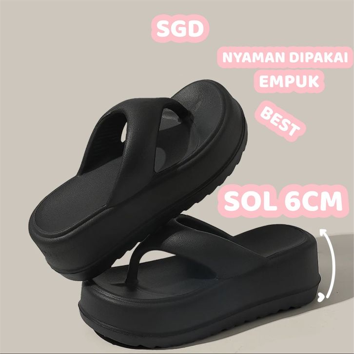 Sandal Wanita Jepit Wedges Tinggi 6cm Premium Super Ringan Bahan Eva Jelly Karet Premium Sandal Flat Wanita Nyaman
