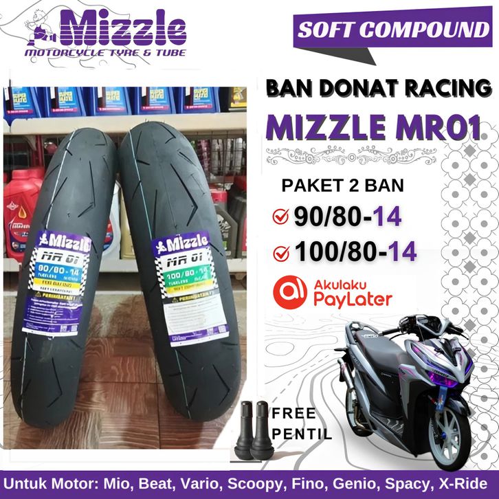 [Star] Ban Donat Ring 14 Tubeless Mizzle Mr01 90/80 & 100/80 Ban Motor Anti Slip & Stabil Soft Compound Motor Matic