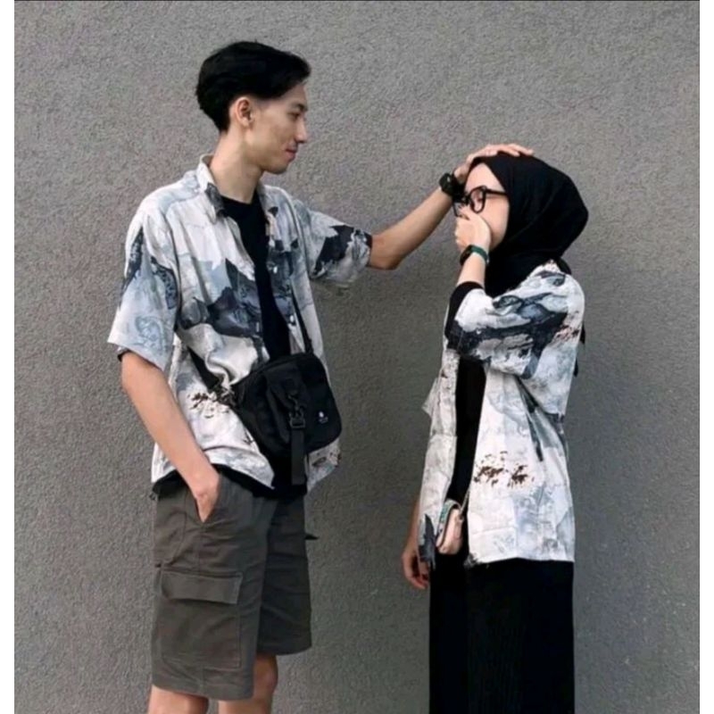 KEMEJA PRIA HAWAI/ KEMEJA PANTAI ABSTRAK VINTAGE CASUAL LENGAN PENDEK RETRO BAHAN RAYON