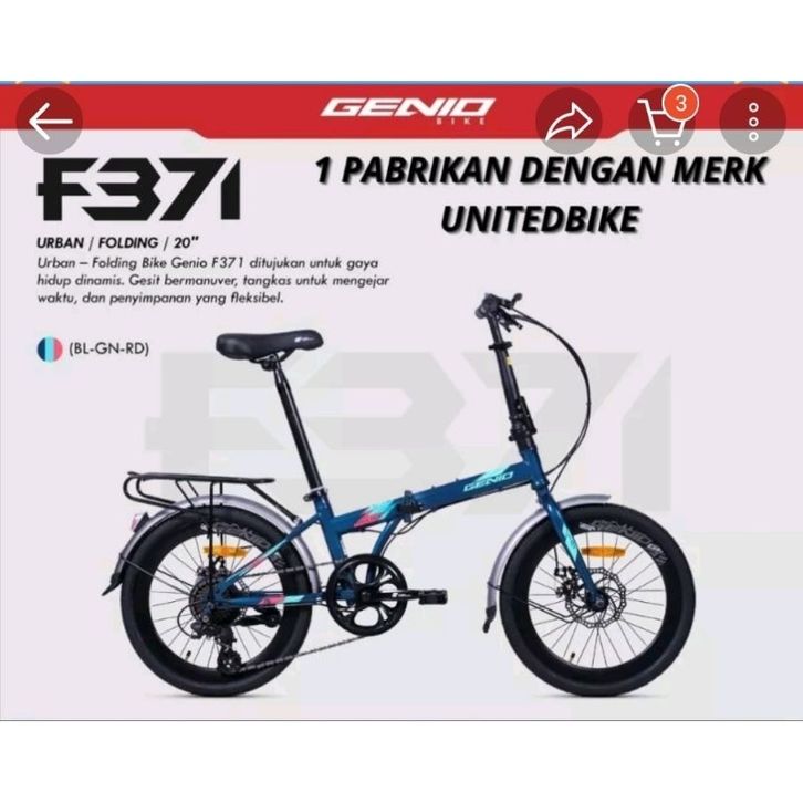 Sepeda Lipat Genio By United Bike 16 20 Inch Laki Laki Perempuan Lipat Dewasa SNI Bukan Polygon Pacific Phoenix Murah