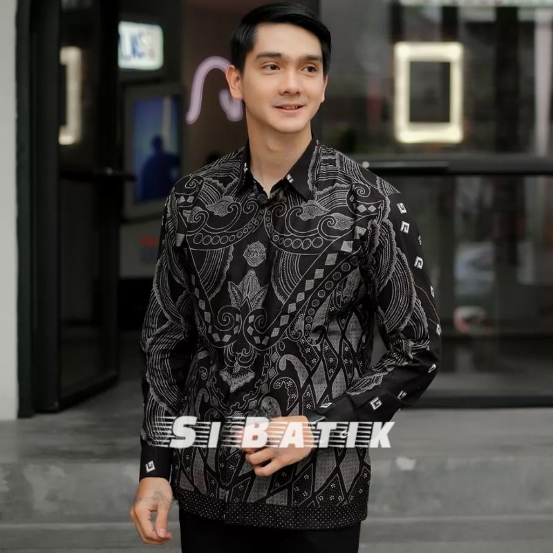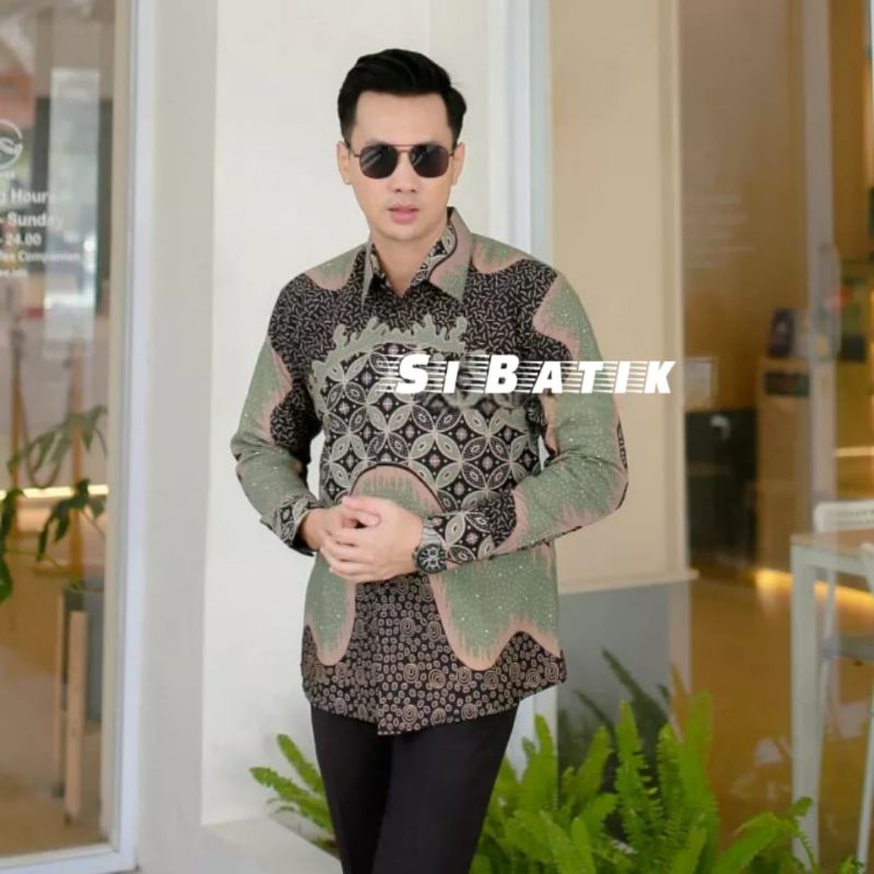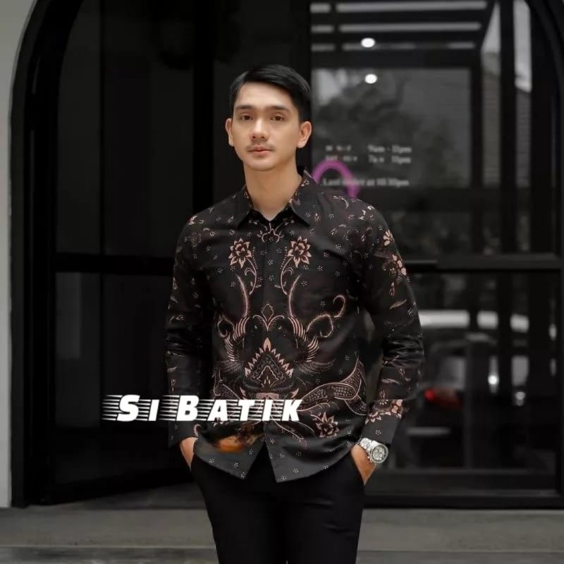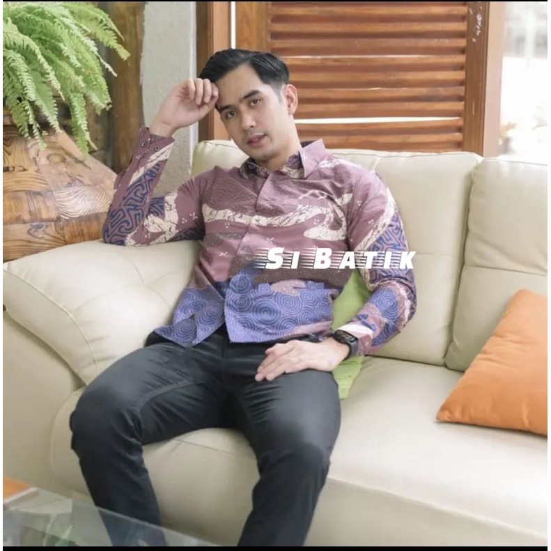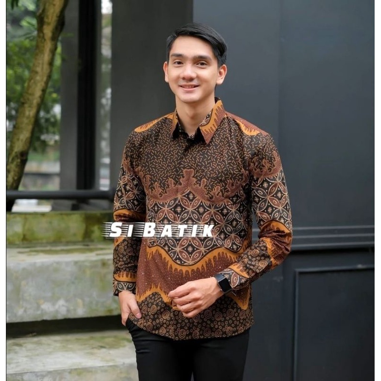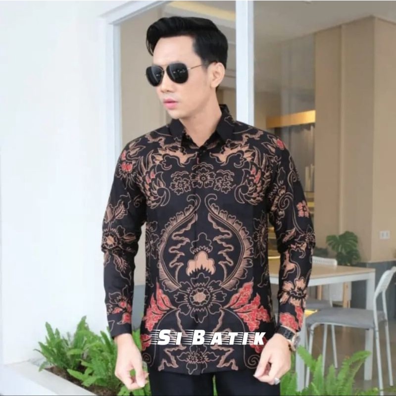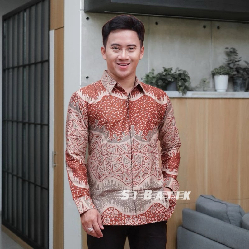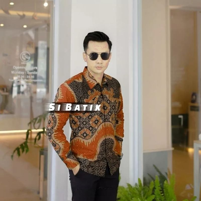 BATIK PRIA KATUN KEMEJA LENGAN PANJANG WARNA ORANGE TERRACOTA