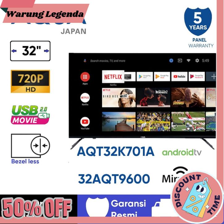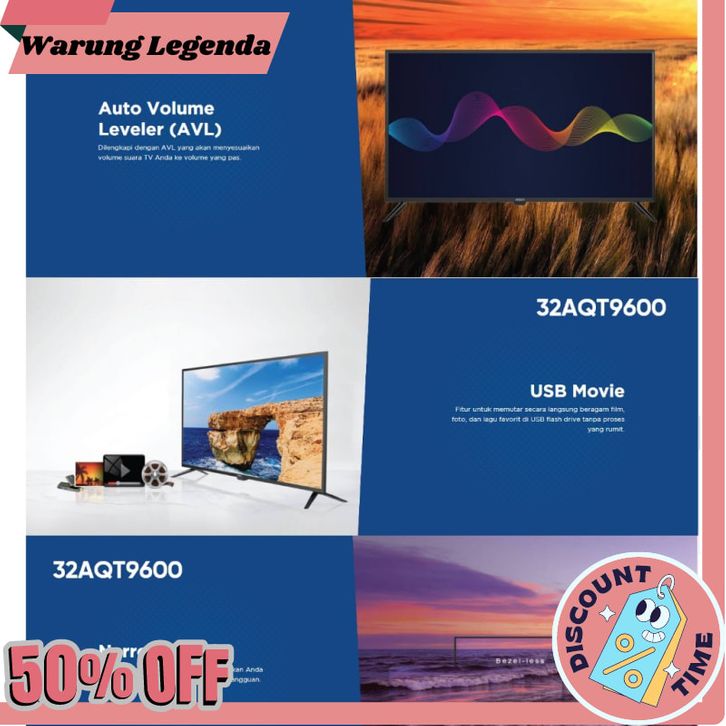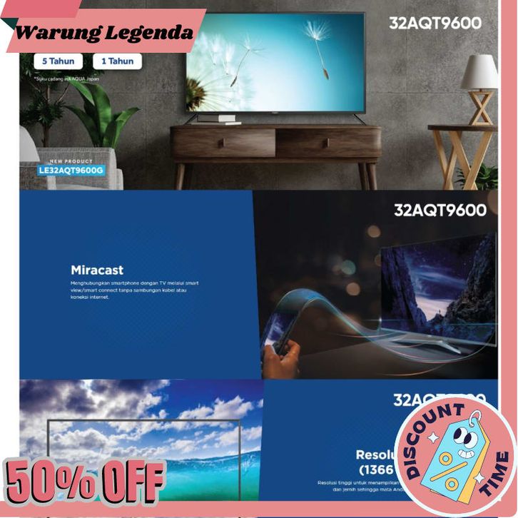 tv smart 32 inch AQUA Elektronik Digital TV LE32AQT9600 32 Inch Digital tv dengan Miracast AQT32K70M LE32AQT9600