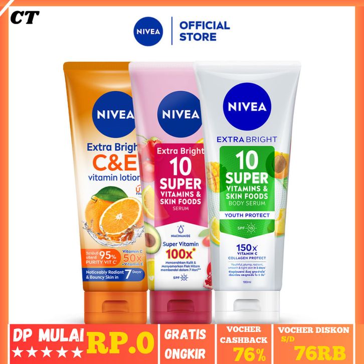 [Mall] NIVEA Body Serum Extra Bright Vitamin Series (Niacinamide + Collagen + C&E) 180ml x3 - Mencerahkan, menyamarkan
