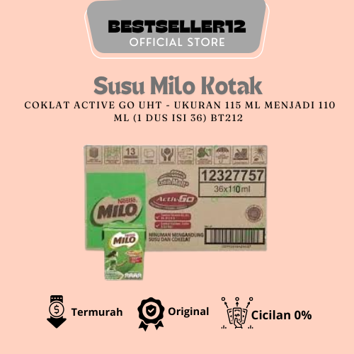 Susu Milo Kotak Coklat ACTIVE GO UHT - ukuran 115 ml MENJADI 110 ml (1 dus isi 36) BT212