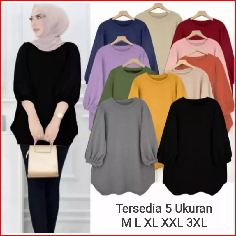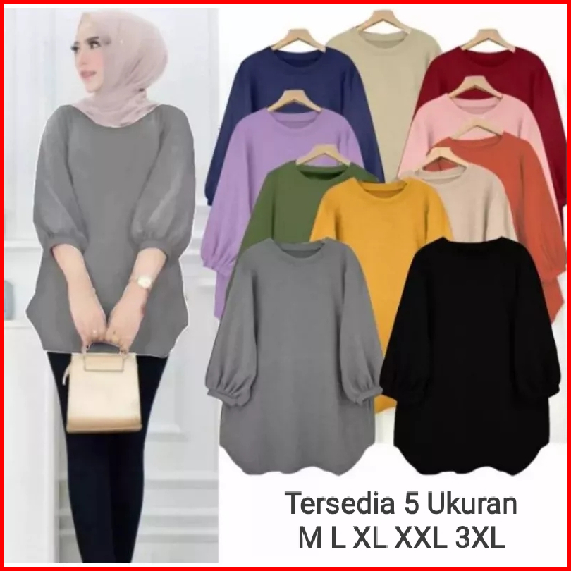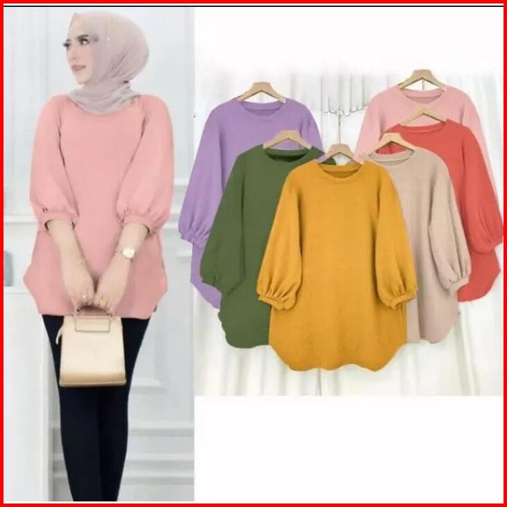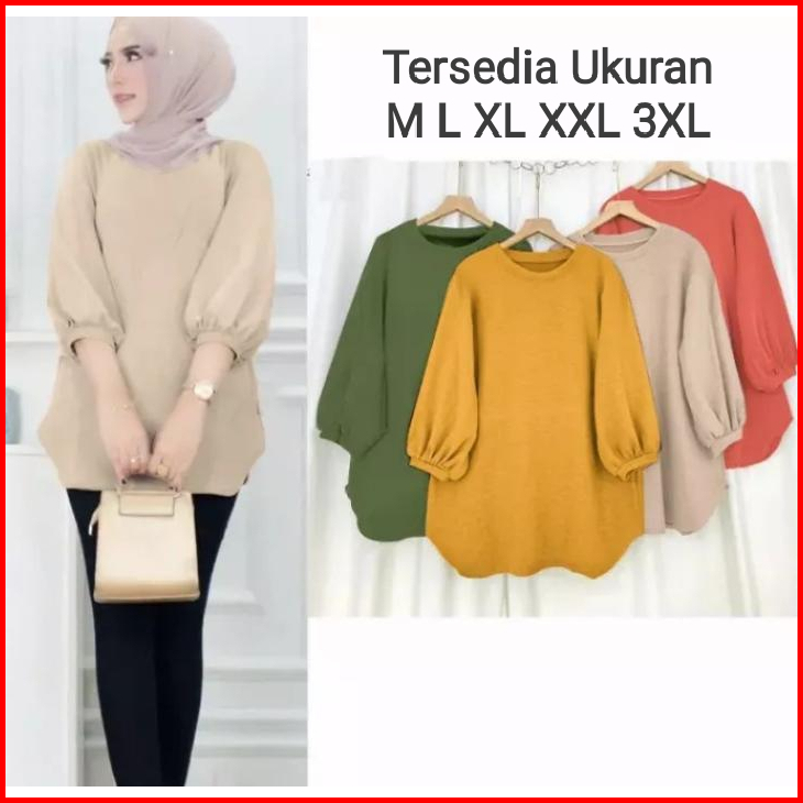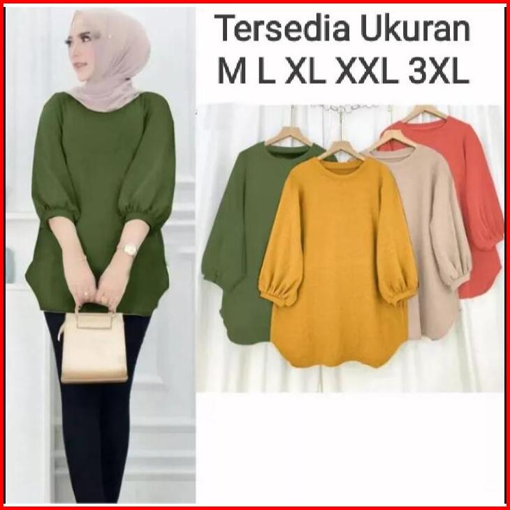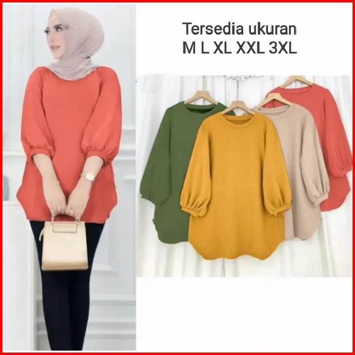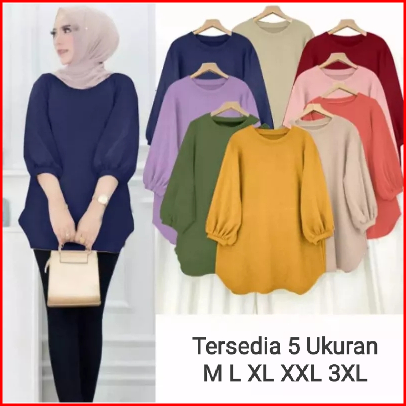 Atasan Blouse Wanita Lengan Balon Atasan Crinkle Polos Terlaris Atasan Wanita Kekinian Atasan Wanita Jumbo Lengan 3 4