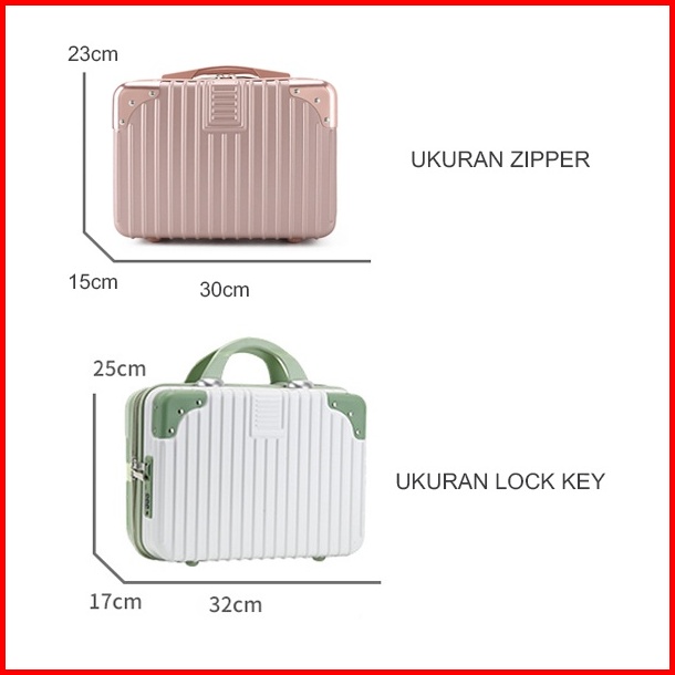 Koper Makeup Beauty Case 14 Inci Zipper Lock Key Travel Bag Organizer Luggage Cosmetic Import