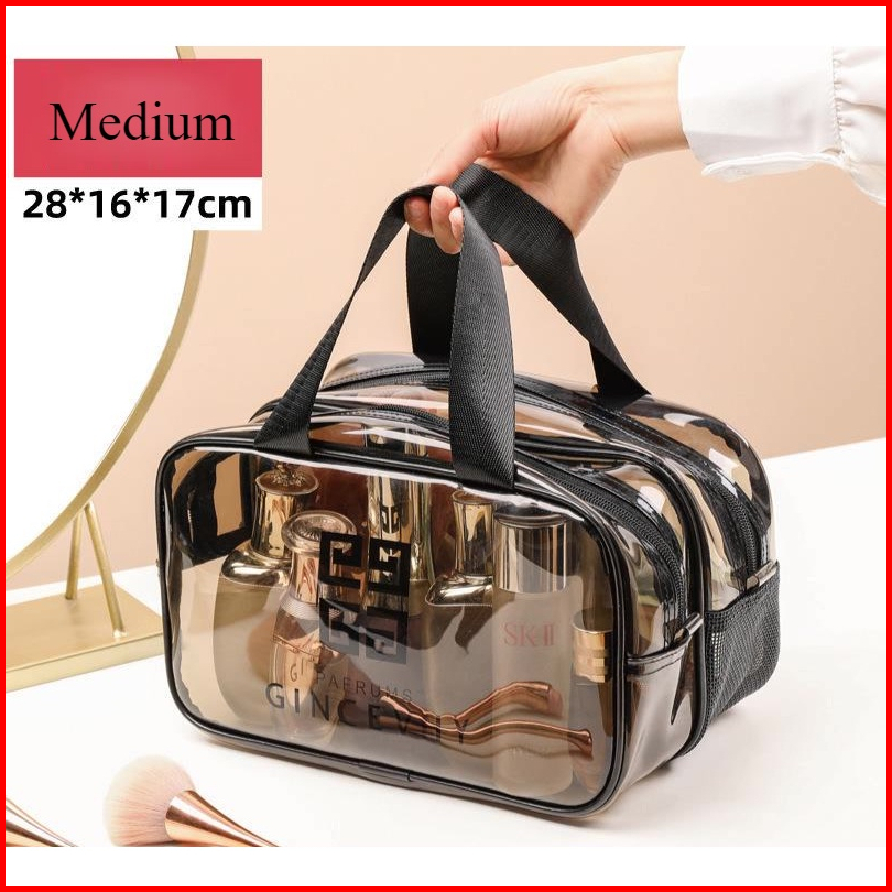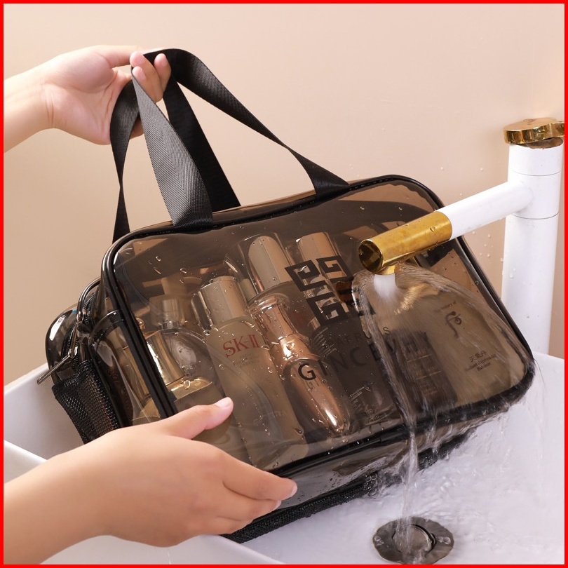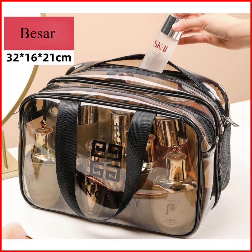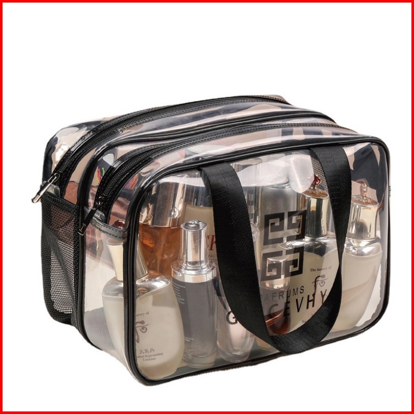 Tas Kosmetik Transparan Jaring Pvc Merah Wanita Portabel Ins Gaya Tas Cuci Perjalanan Double Layer Lapisan Ganda Tas Ren