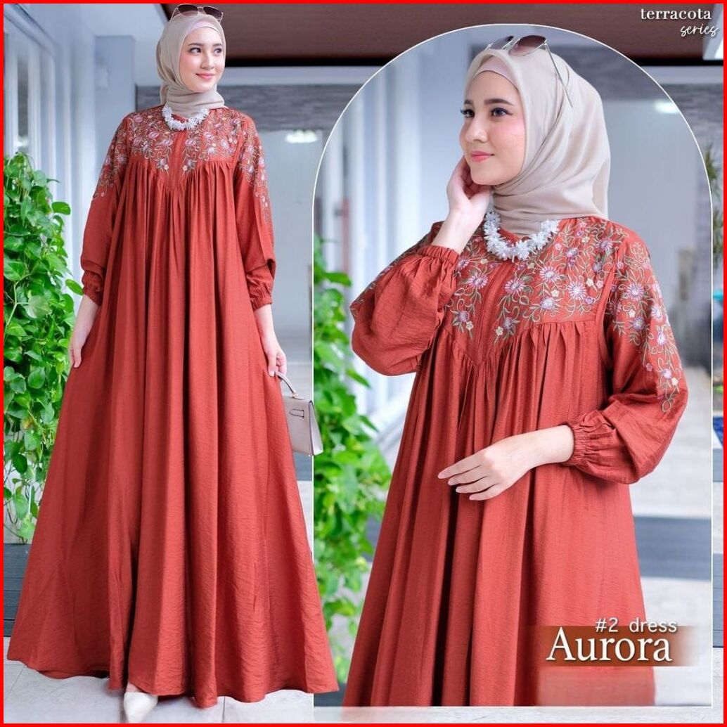 Aurora Dress Material Crinkcle Aplikasi Bordir Zipper Depan Dress Muslimah Terbaru 2024