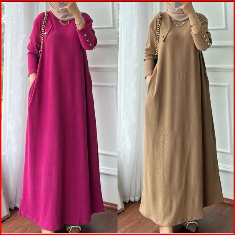 Endira Gamis Polos Maxy Knit Gamis Wanita Terbaru Gamis Kancing Tangan Variasi Ootd Gamis Muslimah Gamis Wanita Gamis Le