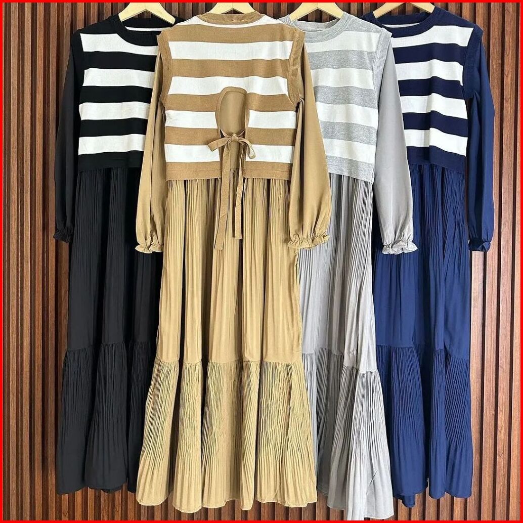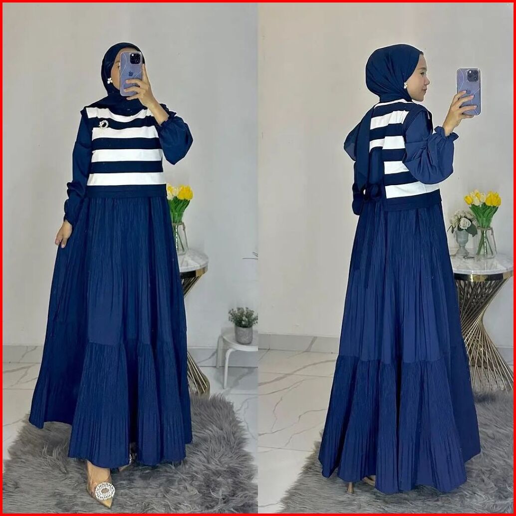 Kevia Maxy Dress Bahan Crinkle Combed Gamis Lebaran 2024 Model Gamis Terbaru Dress Korean Style Elf