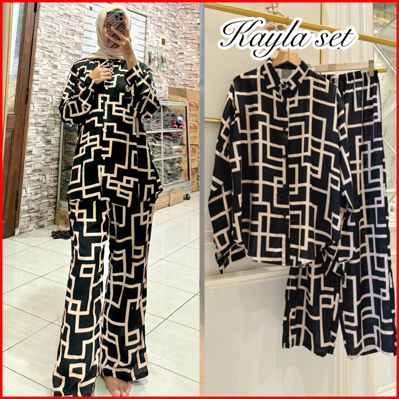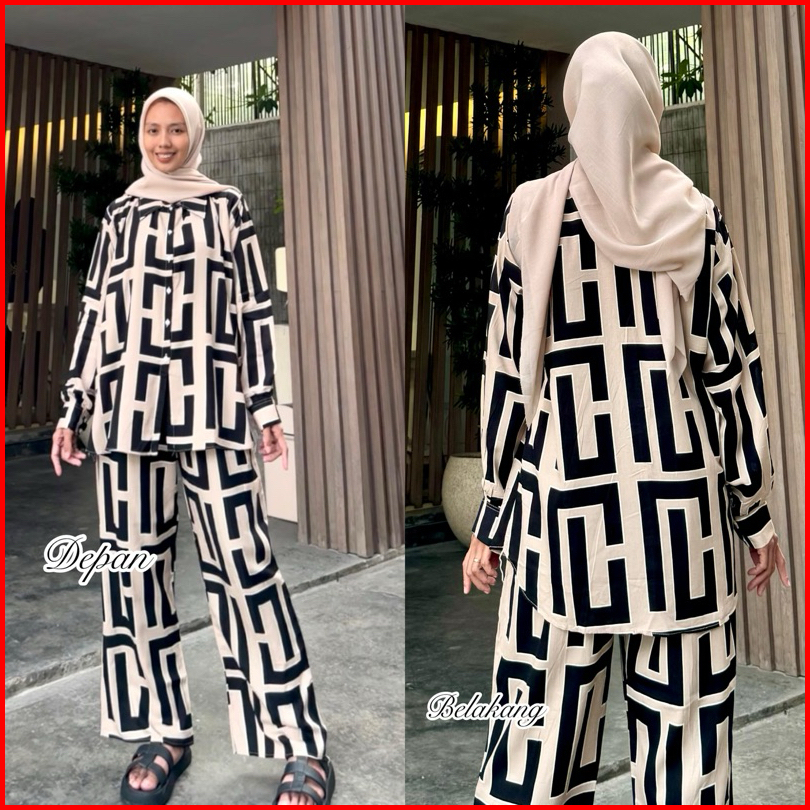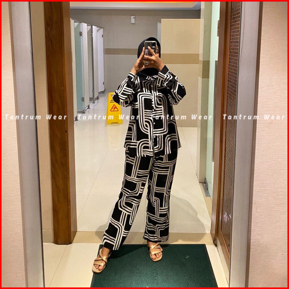 Sky Lotus Set Motif Setelan Rayon Celana Kulot Terbaru Kekinian